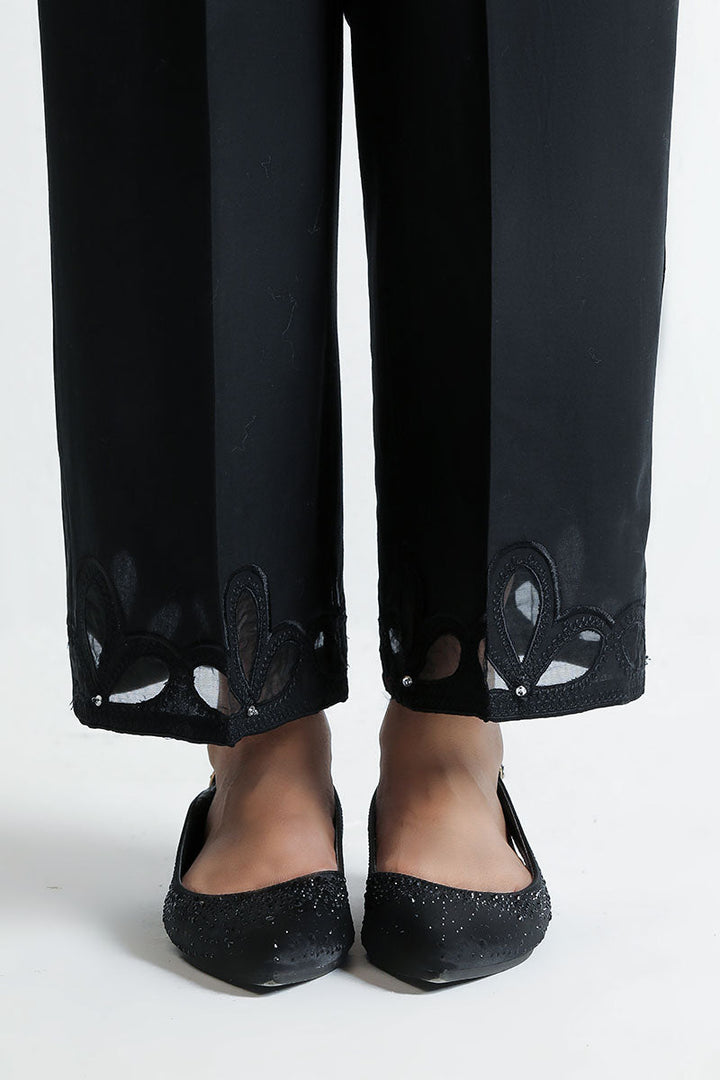 STRAIGHT PANTS,CAMBRIC,ORGANZA CUTWORK+EMBROIDERY