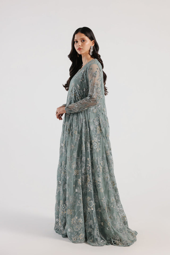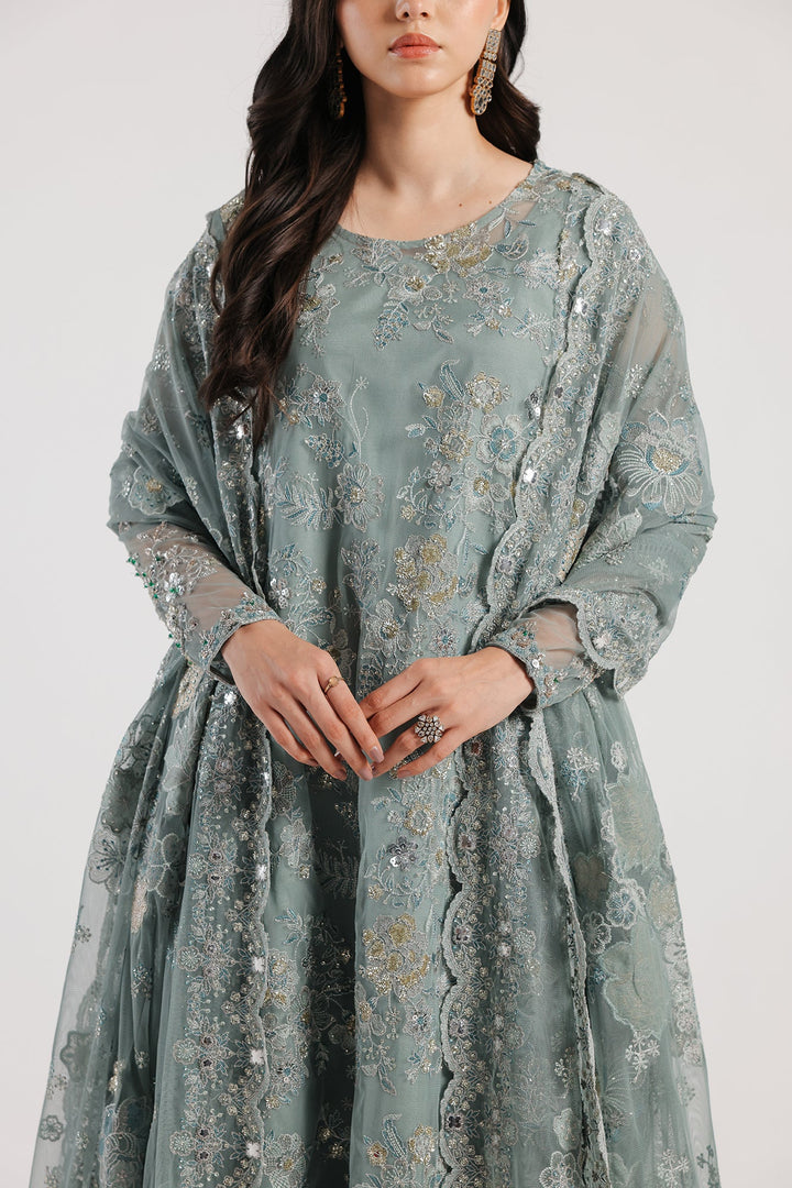 Look breathtakingly beautiful in this mesmerizing light sea green outfit. Crafted in a contemporary pishwas silhouette with round neck, it features beautiful floral embroidery in scintillating colors and enhanced with sequins and beads embellishments. Divinely gorgeous, the chic shirt is paired with a graceful inner shirt and a classically draped embroidered dupatta with scalloped borders - you can't help but feel like a diva in this fairytale ensemble to style at festive events.