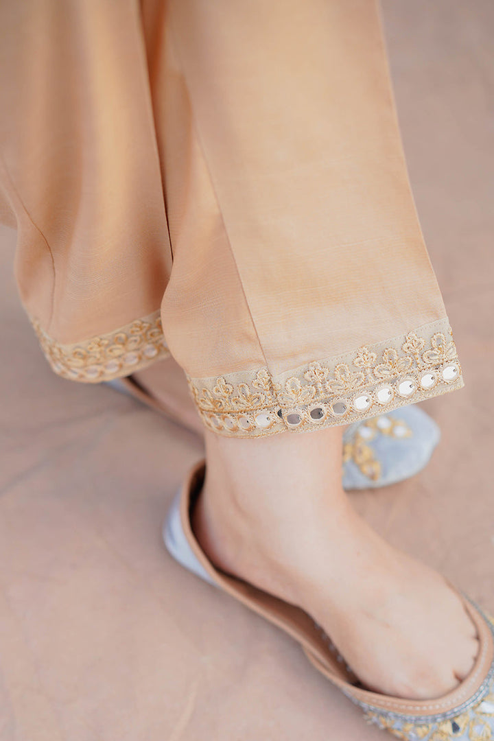 SEQUIN EMBROIDERED RAW SILK STRAIGHT FITTED PANTS