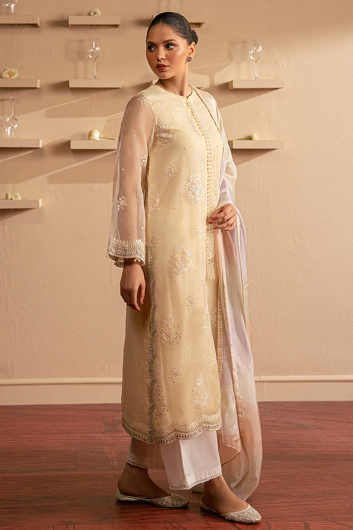 - The SERENE DREAM-2 PC is a stylish and elegant outfit perfect for any occasion. The straight shirt is made of luxurious organza fabric, adorned with intricate embroidery on both the front and back. The round neckline and sleeves feature delicate embroideries and pearl detailing, adding a touch of sophistication. The silk-printed dupatta is also beautifully embroidered, completing the look with a touch of charm and grace. Elevate your wardrobe with this exquisite ensemble.