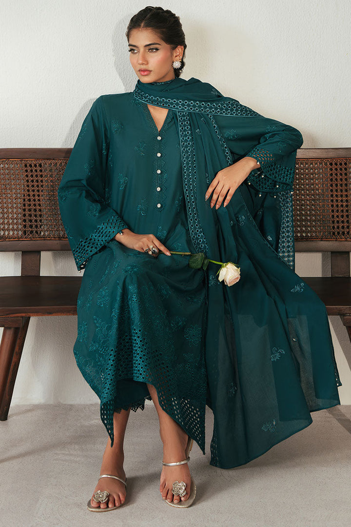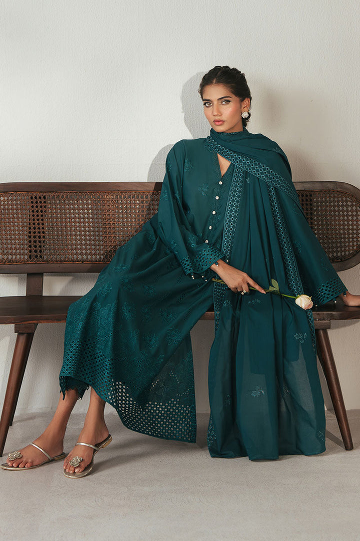 - This elegant 3-piece set features a chikankari-embroidered lawn shirt front and sleeves, paired with a dyed lawn back for refined contrast. The cambric dyed trouser offers smooth comfort and durability, while the lawn chikankari dupatta adds delicate texture to complete the ensemble with sophistication. Perfectly balanced for style and ease, this combination embodies expert craftsmanship and tasteful design.
