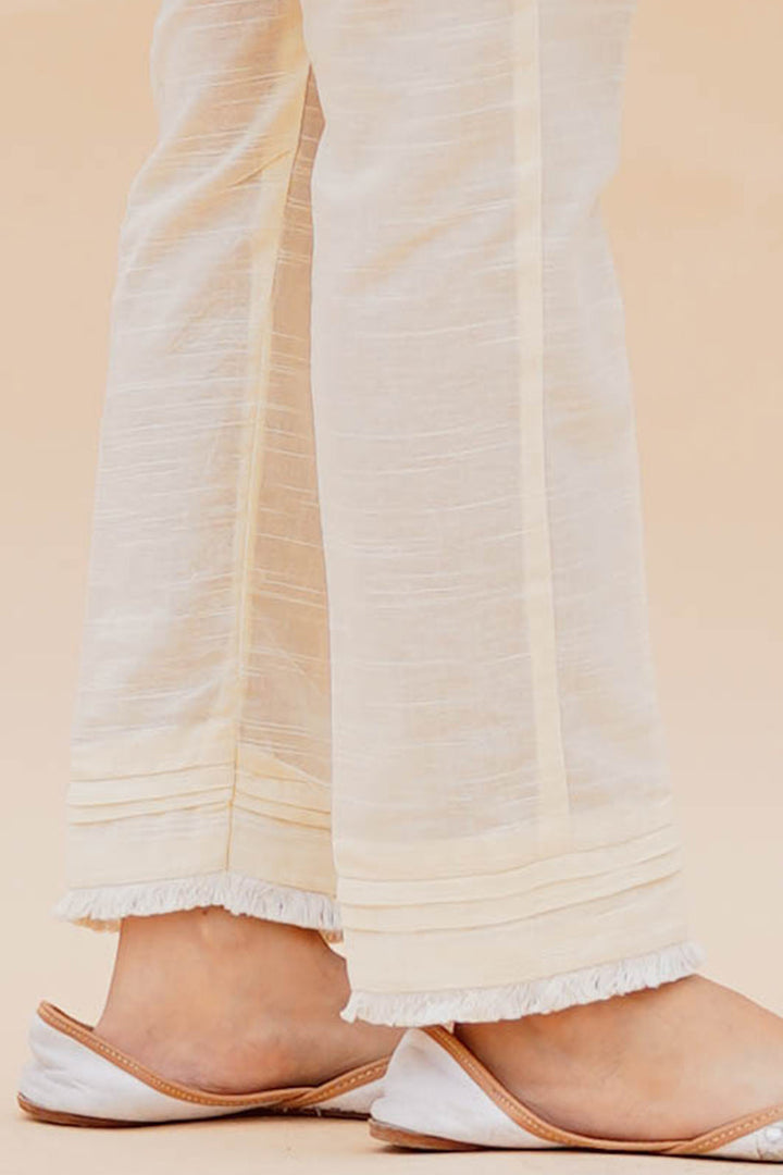 KHADDAR STRAIGHT FITTED PLEAT DETAIL + LACE FINISH PANTS
