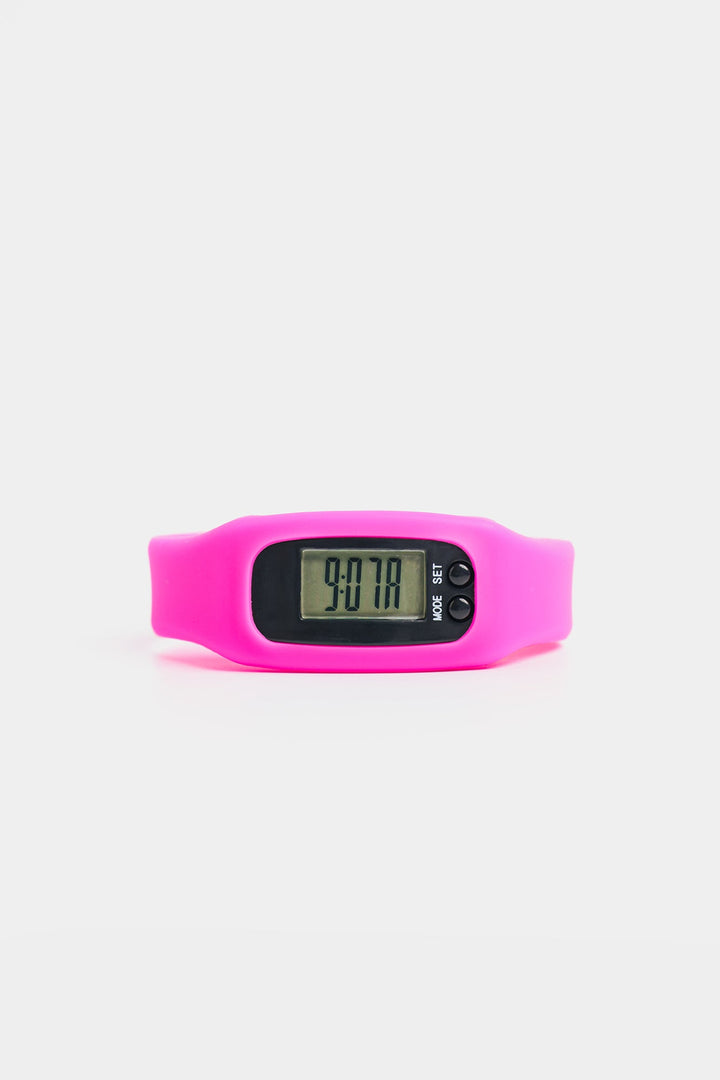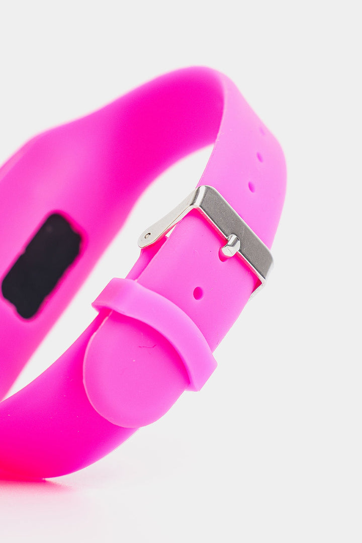 Experience the perfect combination of style and functionality with this classy digital watch. Featuring an oval-shaped digital screen, this trendy accessory showcases a classic design that is both fashionable and practical. The solid bright pink color on the strap add a touch of charm. Elevate your look with this must-have digital watch for girls.