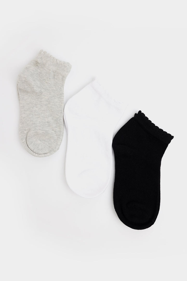 Endearing and delightful three pair of socks rendered in black, grey and white color illustrating solid design. These socks are an ideal option to match with variety of outfits.