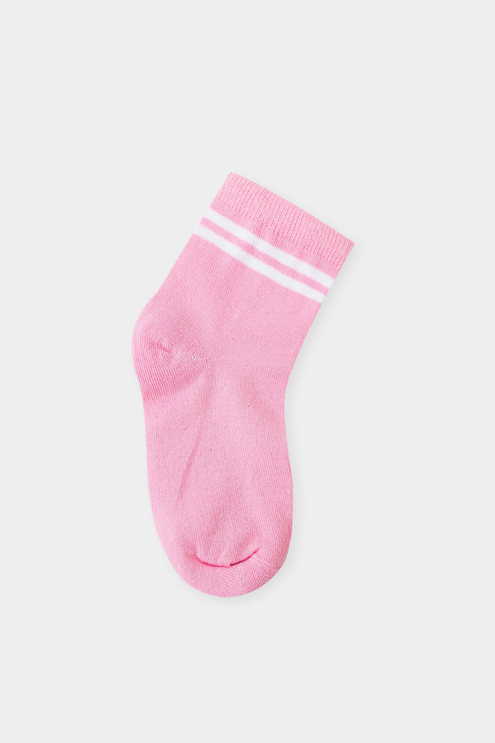 Bring a sporty touch to your little one's wardrobe with this adorable pack of three striped ankle socks. This set includes a sunny yellow, a vibrant pink, and a soft peach pair with delicate white stripes. Crafted for comfort and durability, these socks are perfect for everyday wear, whether they're heading to school or enjoying playtime. The classic striped design adds a fun and playful element to any outfit.