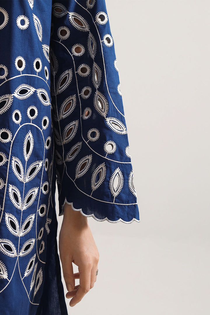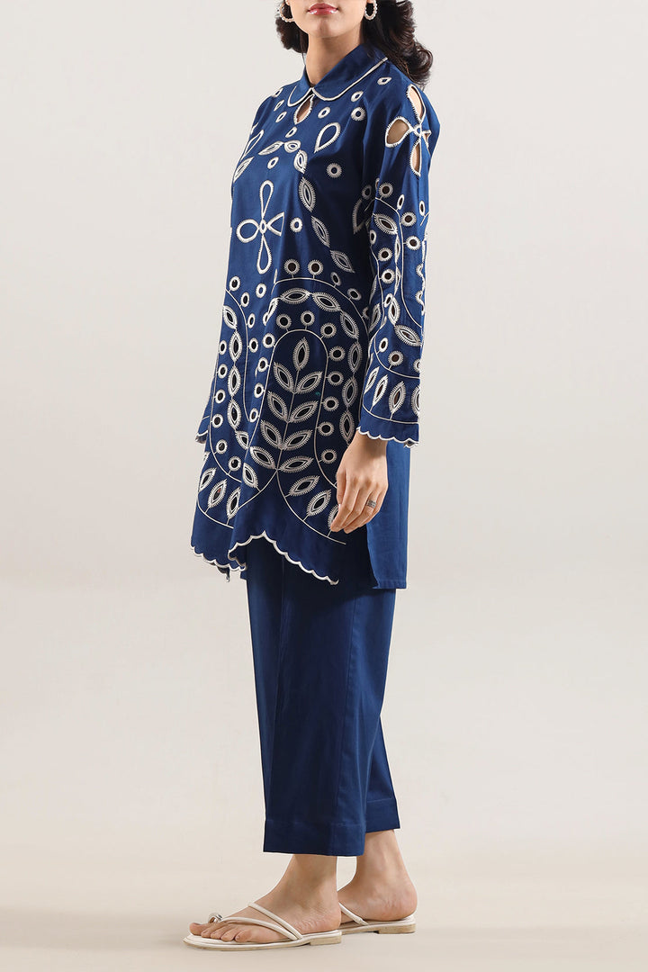 Solid Embroidered Cambric Stitched 2-Piece By SAYA Features A Sophisticated Blue Hue. Crafted From Lightweight Cambric Fabric That Ensures Breathability And Comfort, The Shirt Is Enhanced With Delicate Tone-On-Tone Embroidery Along The Front Panel. The Ready-To-Wear Trouser Matches Seamlessly With Clean Lines And A Polished Finish. This Ensemble Is Ideal For Daytime Meetings, Office Work, Or Casual Gatherings Where Simple Elegance Is Key.