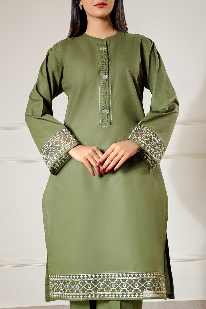Solid Embroidered Cambric Stitched 2 Piece (Shirt/Trouser)