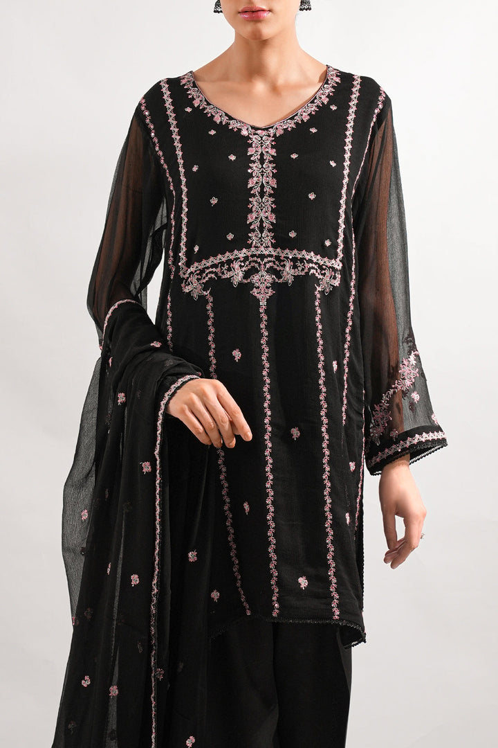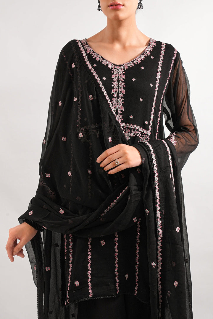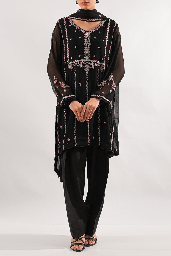 Experience Refined Elegance With This Solid Embroidered Chiffon 3‑Piece Stitched Set By SAYA, Tailored For Statement Style And Comfortable Glamour. Crafted From Luxurious Chiffon, The Shirt Features Subtle Tone‑On‑Tone Embroidery That Speaks Of Understated Sophistication. A Matching Poly‑Chiffon Dupatta Adds Graceful Movement, While The Dyed Trouser Offers Practical Comfort And Structure.
