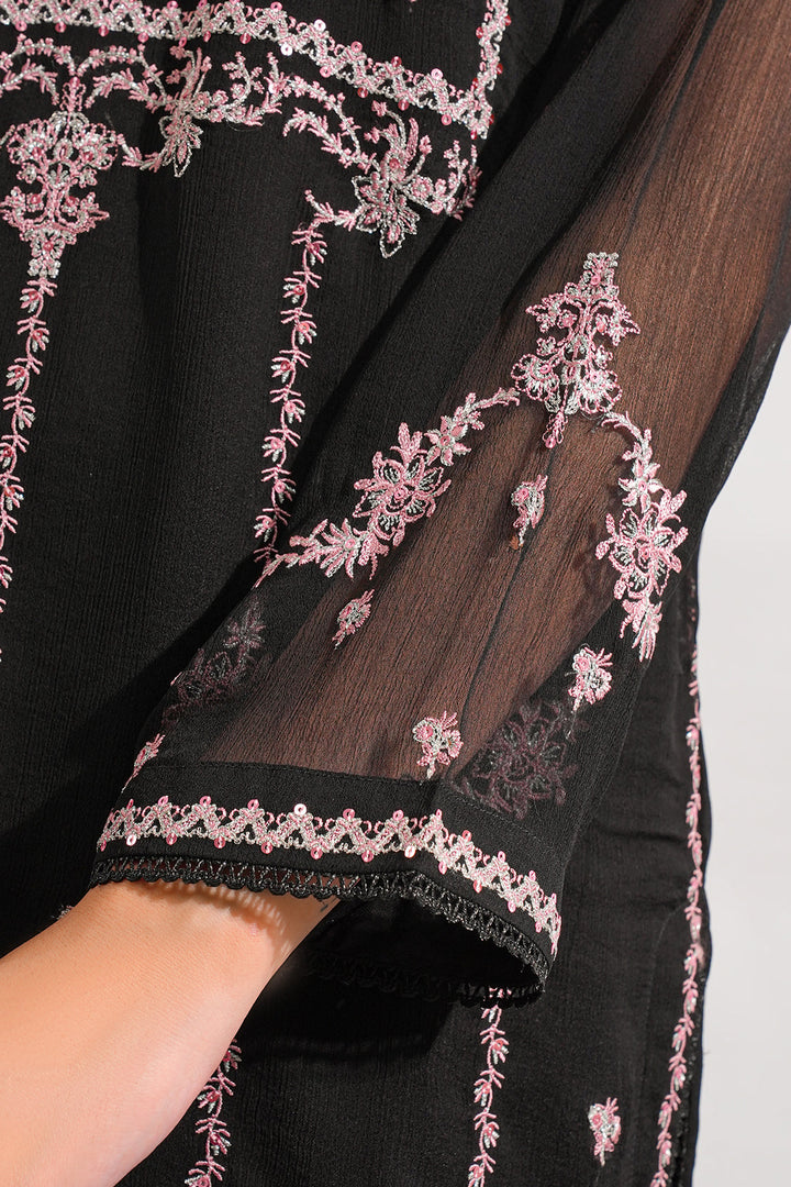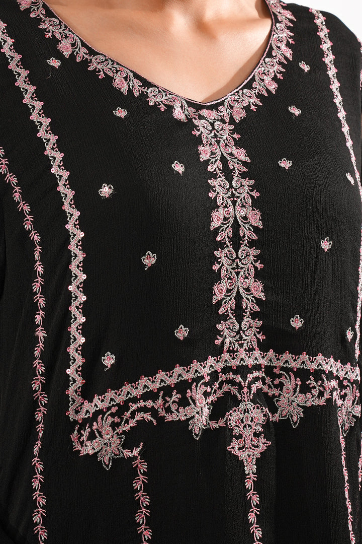 Ready To Wear Solid Embroidered Chiffon Stitched Shirt