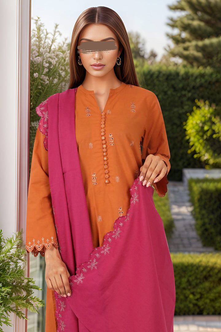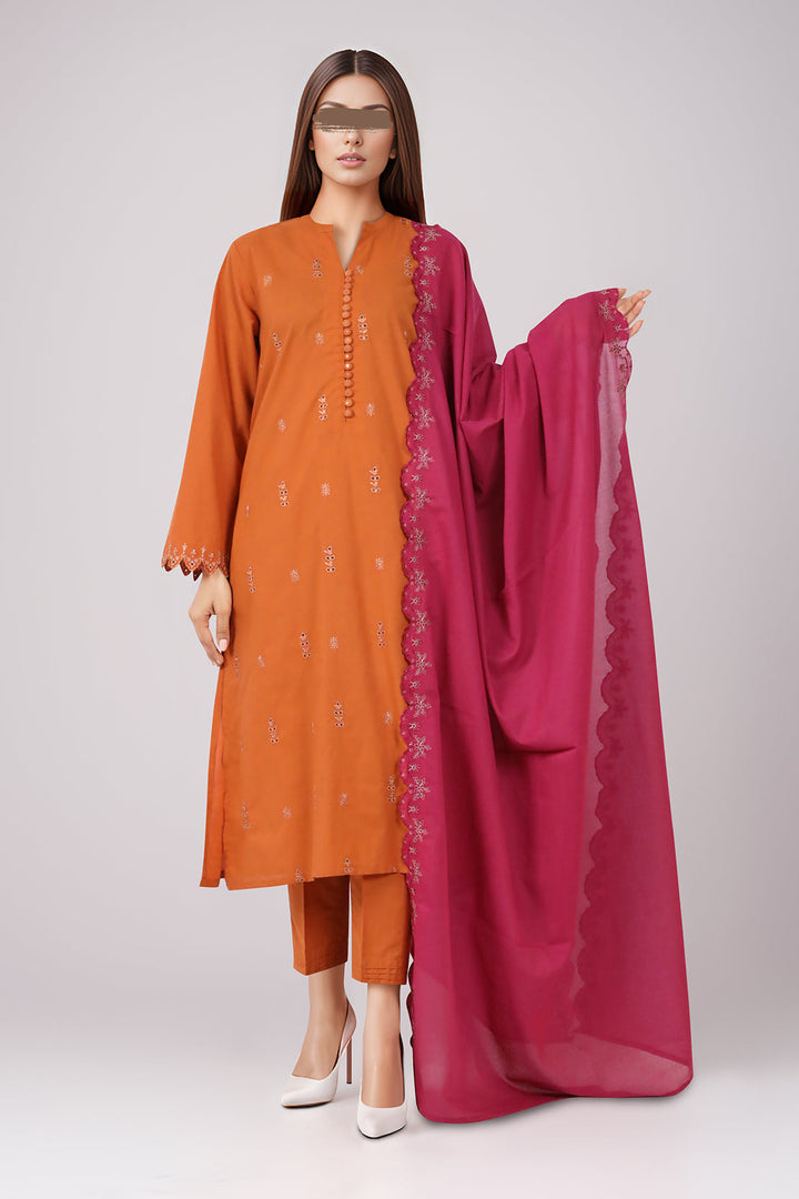 Solid Embroidered Cotton Stitched 2 Piece (Shirt/Trouser)