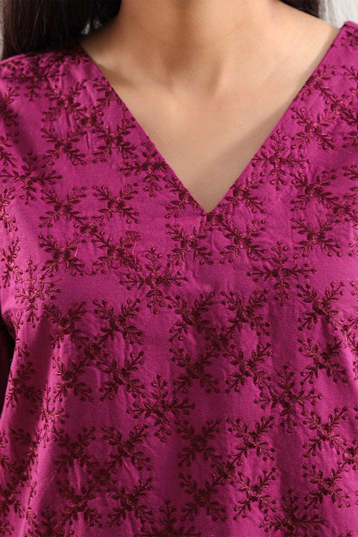 Upgrade Your Wardrobe With SAYA’s Solid Embroidered Poplin 2-Piece Set In Burgundy. Crafted From High-Quality Poplin Fabric That Merges Clean Structure With Breathable Comfort, The Shirt Features Elegant Embroidery That Elevates The Design While Remaining Minimalist. Paired With A Coordinated Trouser For A Complete Styled Ensemble, The Deep Burgundy Tone Brings Rich Sophistication—Ideal For Smart Casual Outings, Day-to-Evening Wear, Or Polished Everyday Looks.