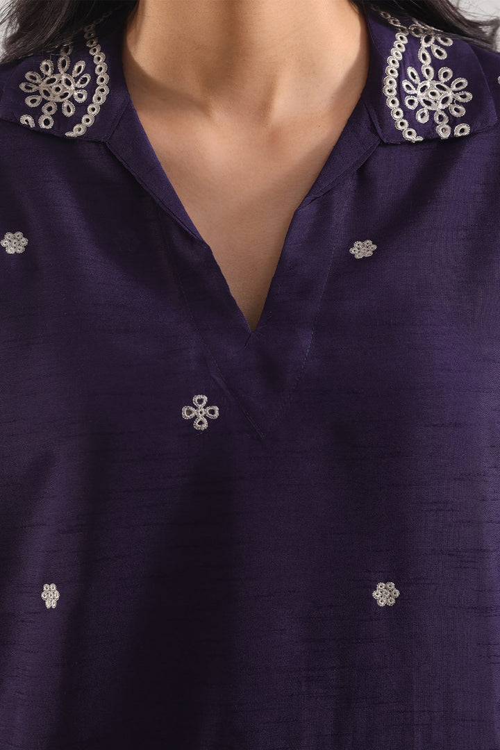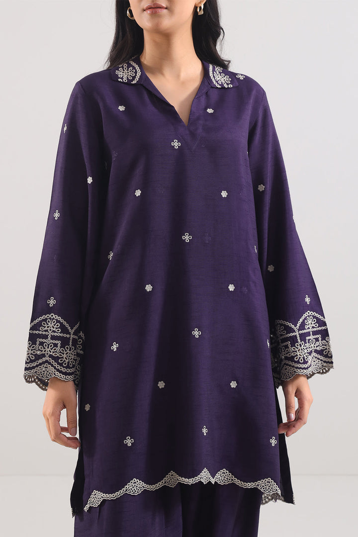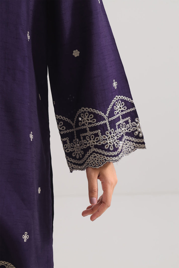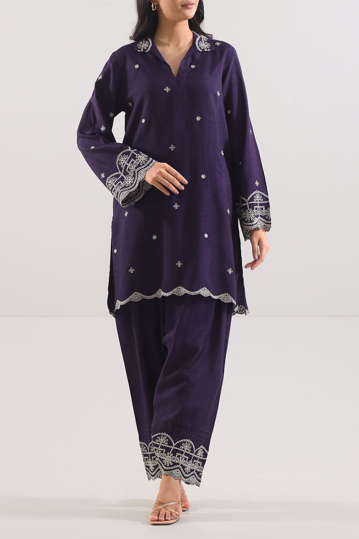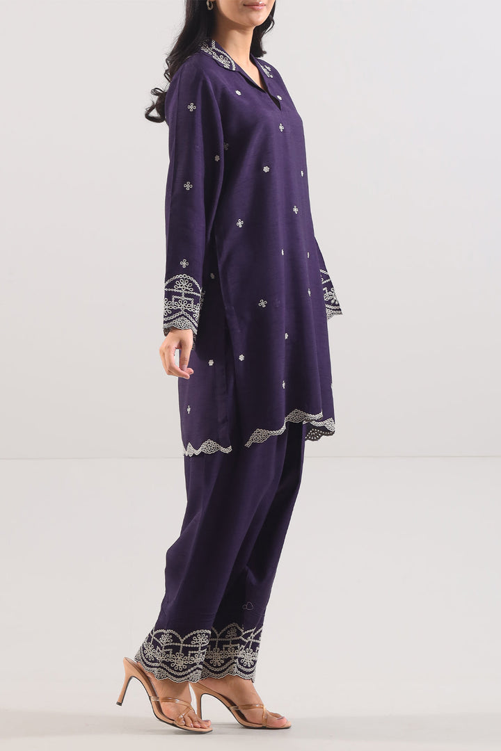 Elegant And Regal, This SAYA Solid Embroidered Silk 2-Piece In Deep Purple Radiates Understated Luxury. Crafted From Silk (Or Silk-Touch Like Fabric) To Provide A Silky Sheen And Smooth Drape, It Marries Softness With Polished Appeal. The Subtle Embroidery Enhances The Solid Body Without Overpowering, Offering A Touch Of Artistry In Modest Detail. With Impeccable Stitching And Refined Finishing, The Shirt And Trouser Present A Cohesive, Sophisticated Ensemble. Ideal For Formal Dinners, Evening Receptions, Or Stylish Gatherings, This Set Reflects Graceful Confidence Without Excess.