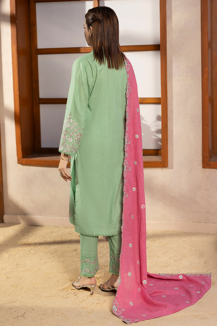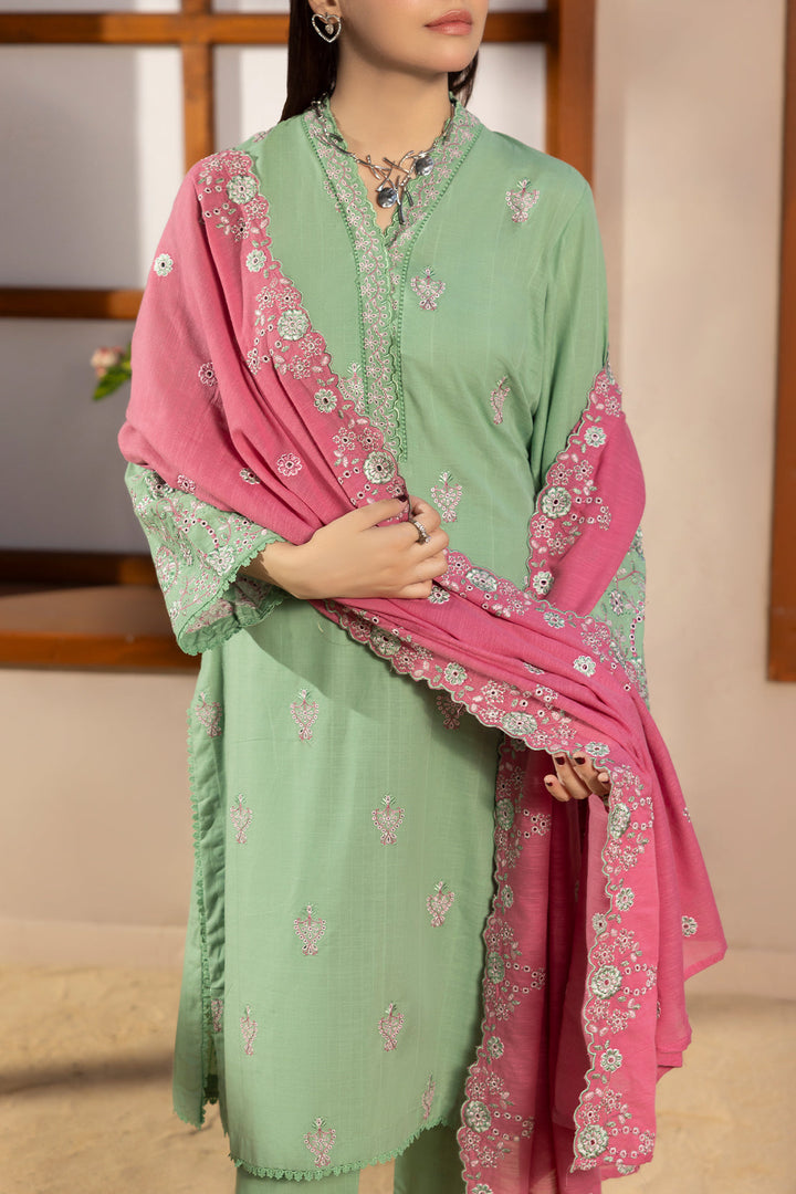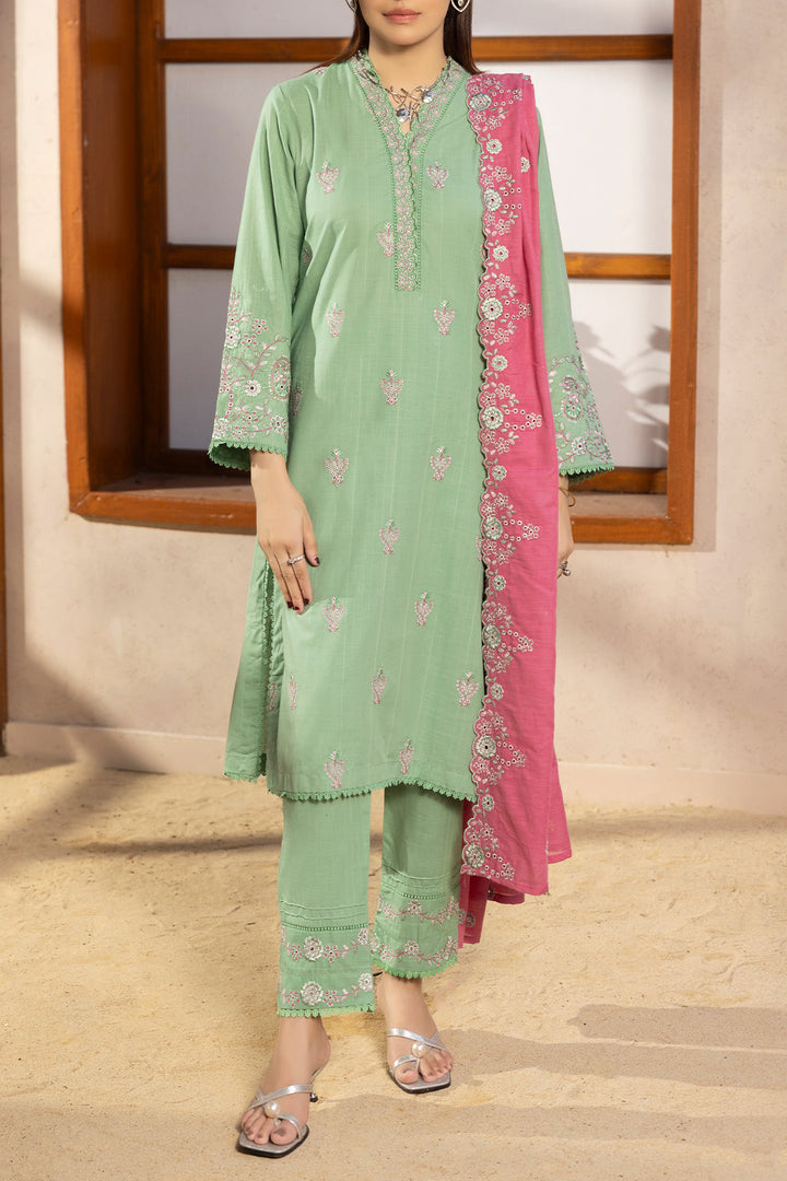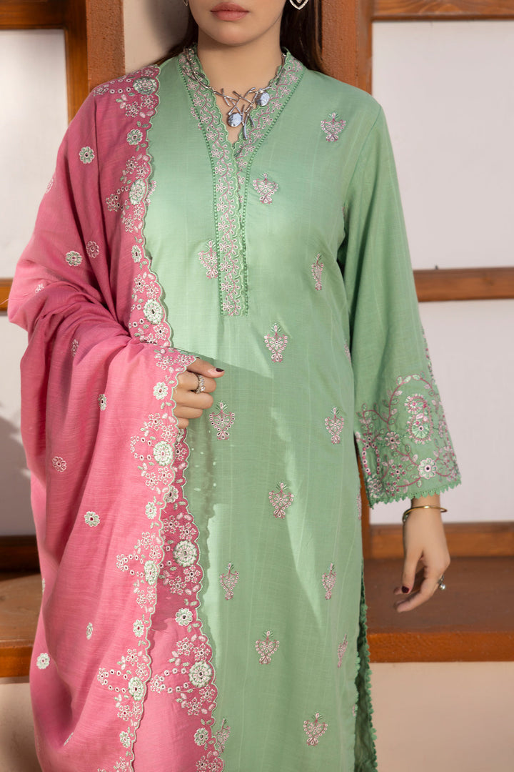 Solid Embroidered Slub Cotton Stitched 3 Piece