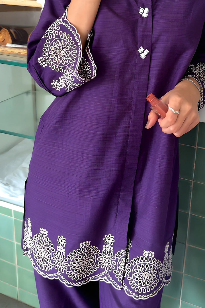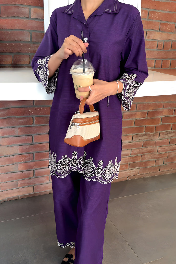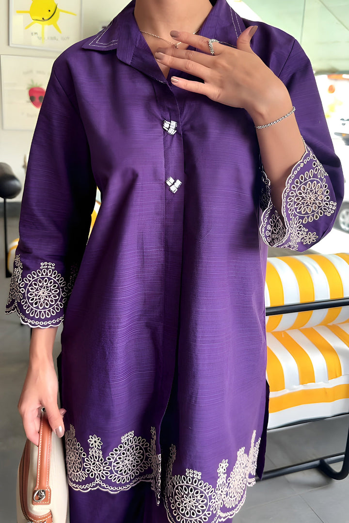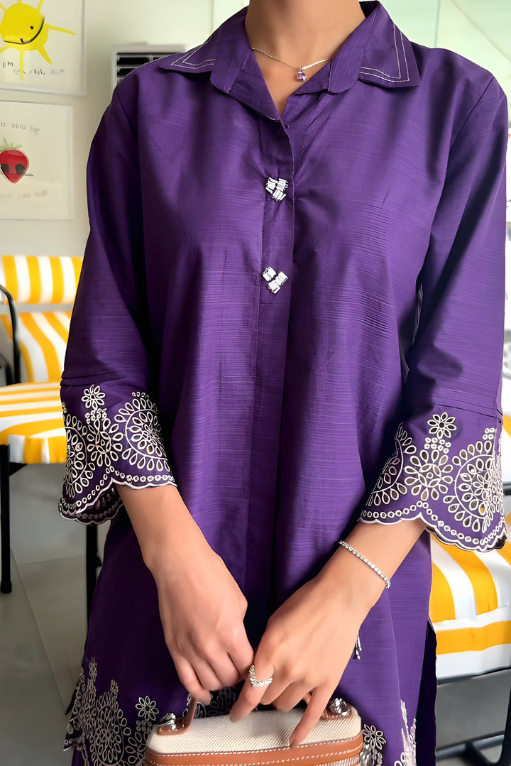 Elevate Your Everyday Wardrobe With This Elegant Solid Embroidery Viscose Slub Stitched Shirt From SAYA. Crafted In A Striking Magenta Tone, It Features Soft, Textured Viscose Slub Fabric That Offers Breathability, A Flattering Drape, And Everyday Comfort. Intricate Tonal Embroidery Enhances The Shirt With Subtle Artistry And Refined Detail. Ready-To-Wear And Expertly Stitched, It Strikes A Harmonious Balance Between Simplicity, Versatile Style, And Daylong Ease.