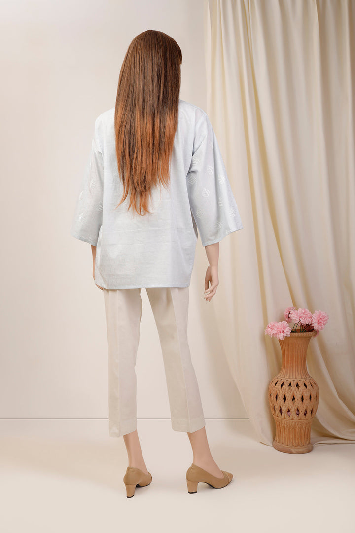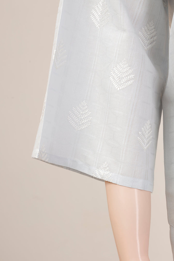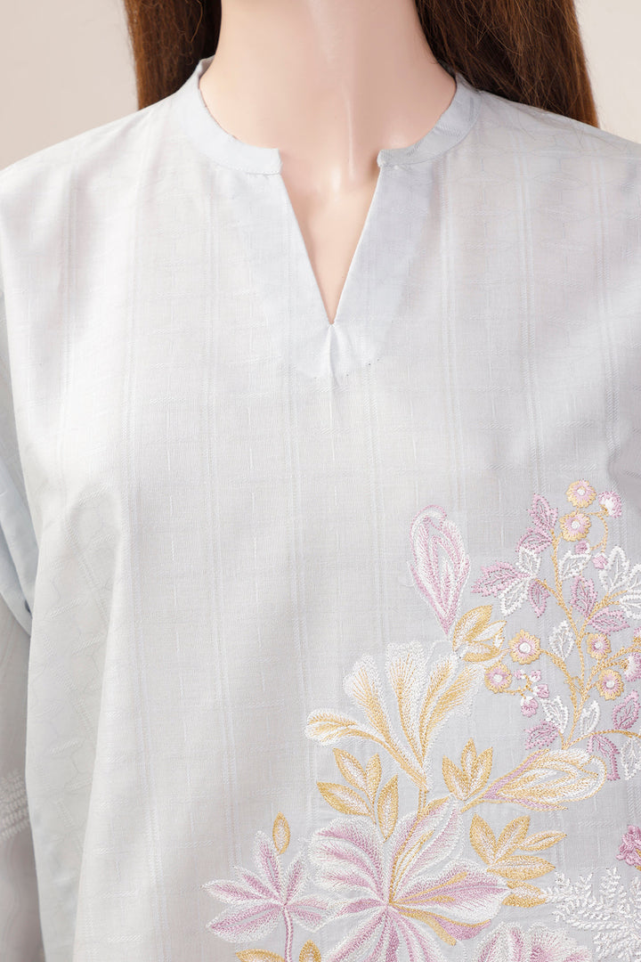 Solid Lawn Jacquard Emb Stitched Shirt