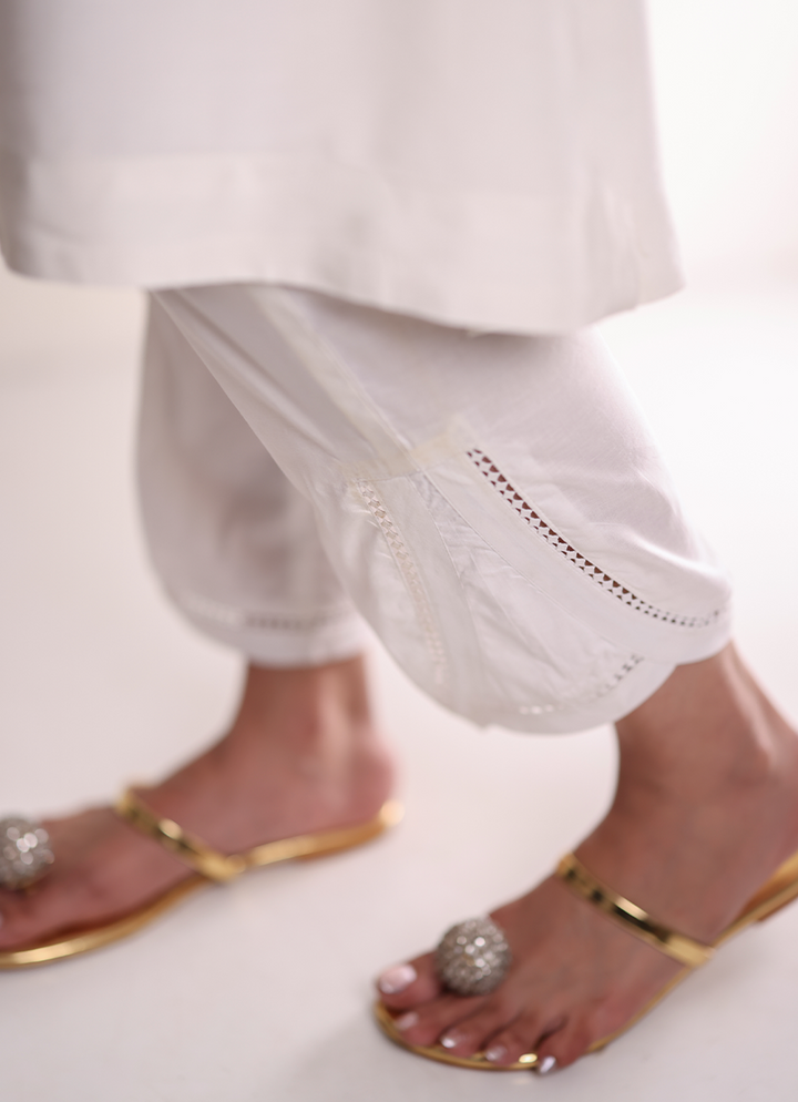 Unique patterned cuffs with lace finish an ideal trouser for a relaxed summer look.