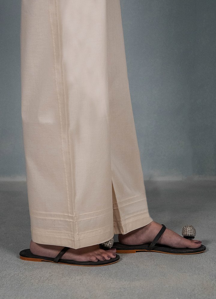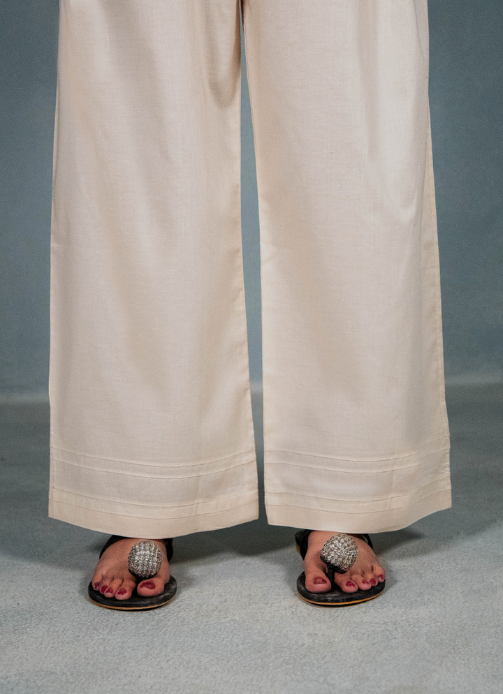 These flowing beige bell-bottoms look ethereal in beige colour, and emit a magnetic allure. Featuring clean folded lines on the hem, these Pintex Izaar are versatile in style and go well with any top.