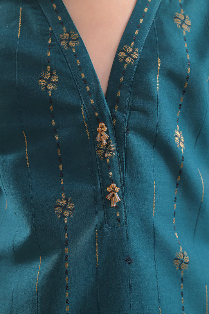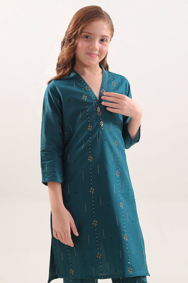 Elevate Your Child’s Wardrobe With This SAYA Cotton Jacquard 2-Piece Set, Crafted From High-Quality Cotton Jacquard That Features An Intricate Pattern Woven Directly Into The Fabric. Unlike Printed Designs, The Texture Here Is Inherent — Giving The Shirt And Trouser A Rich, Three-Dimensional Look That Retains Its Definition Even After Repeated Washes. The Shirt Is Tailored With A Clean Collar And Neat Seams, Delivering A Polished Yet Comfortable Silhouette. The Trouser Comes With An Elastic Waistband And A Straight Cut, Making It Easy For Kids To Move Freely While Ensuring A Secure Fit. The Naturally Breathable Cotton Base Offers Gentle Comfort Against The Skin, While The Jacquard Weave Adds Structure And Durability.