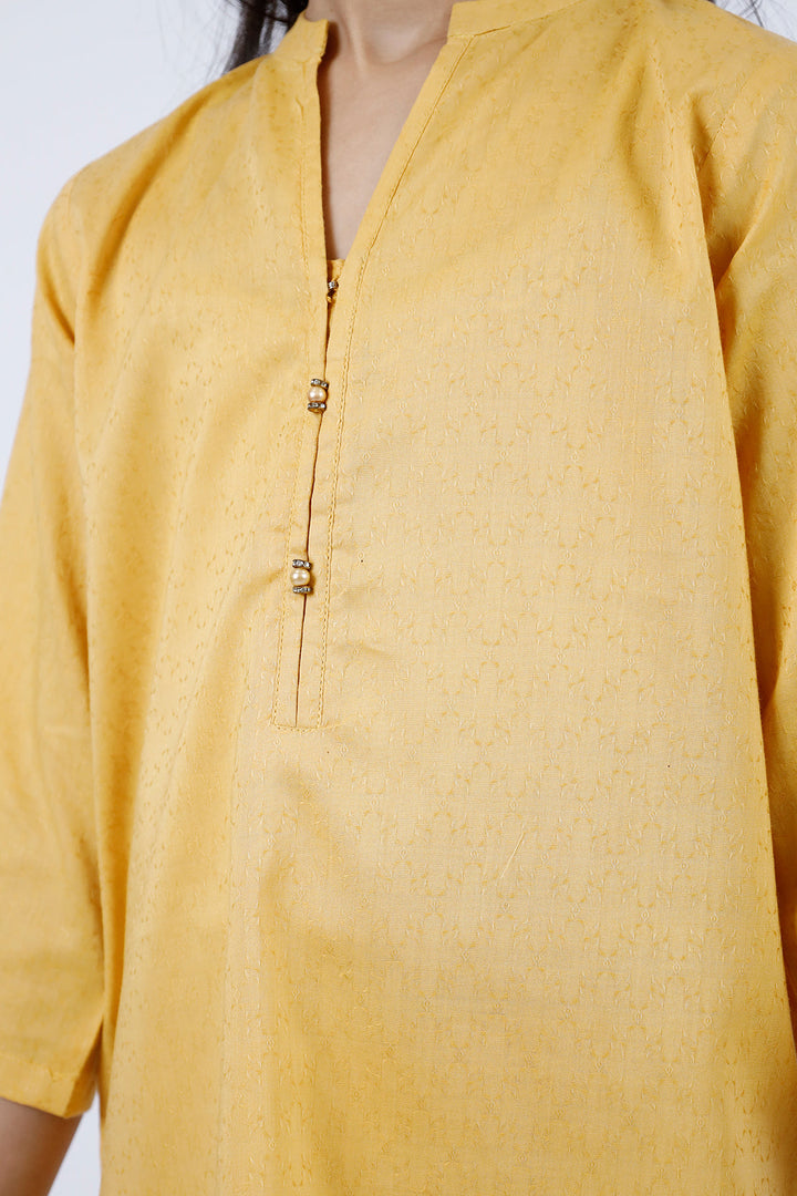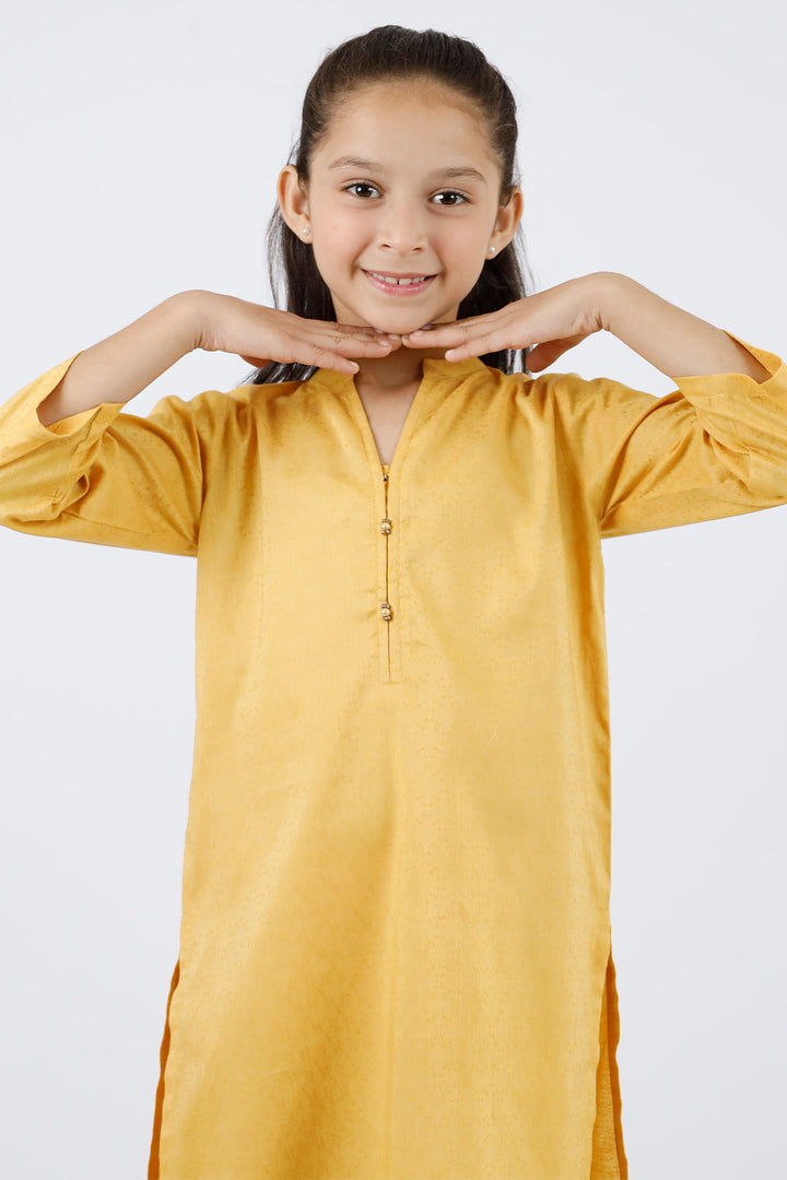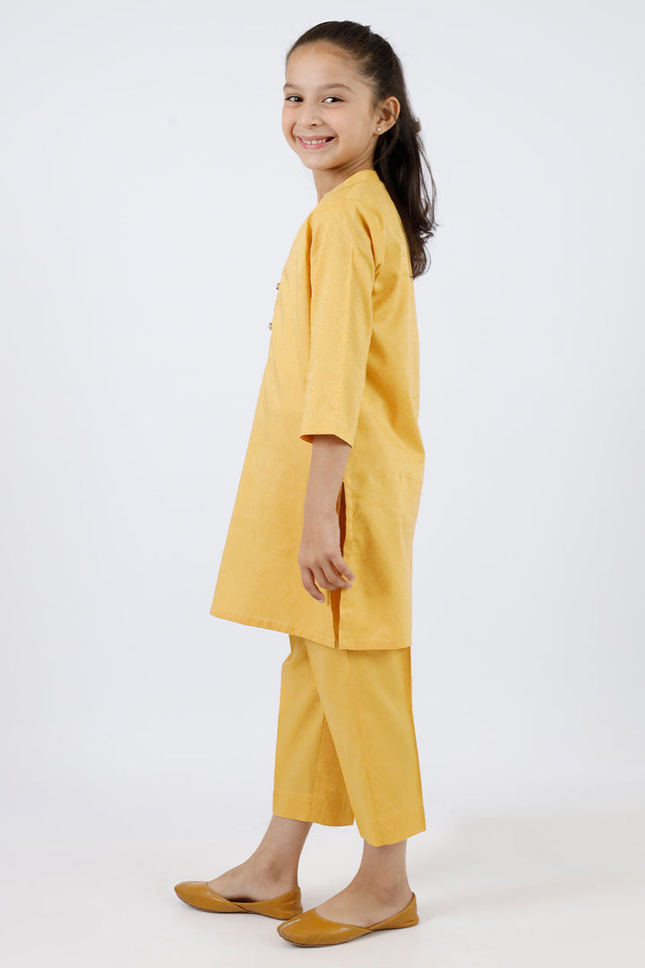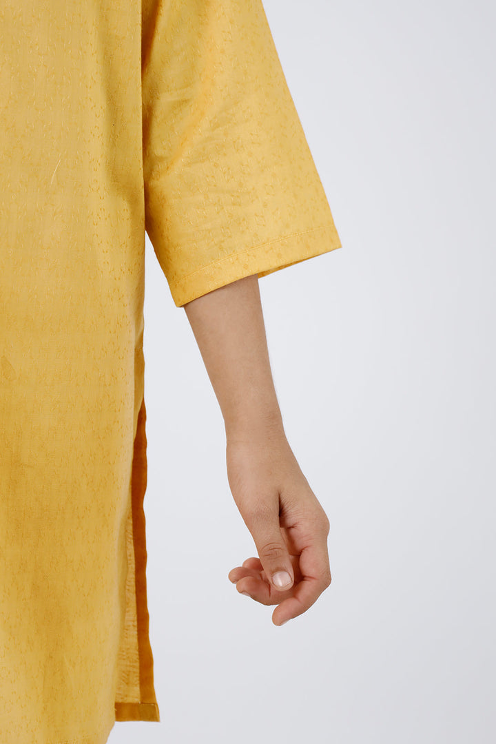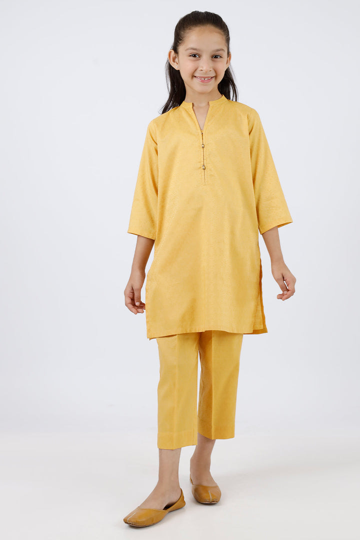 Dress your little one in this stitched cotton jacquard shirt and trouser set for kids. Made from soft, textured cotton jacquard fabric, it’s designed for comfort and style, perfect for casual or festive occasions. Fabric: Cotton Jacquard. Length: Stitched 2-piece. Disclaimer: Actual product color may vary slightly from the image.