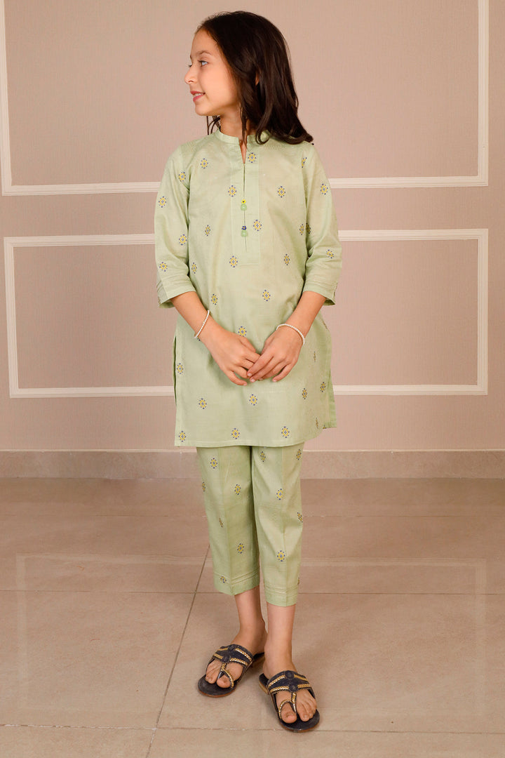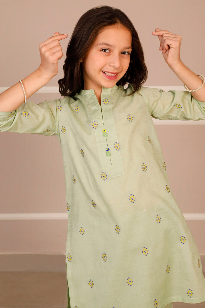 Dress your little one in comfort and style with Saya’s Stitched Cotton Jacquard Shirt & Trouser Set for Kids. Crafted from breathable cotton jacquard fabric, this 2-piece outfit features a stylish texture and a soft feel—perfect for daily wear, family gatherings, or festive occasions.