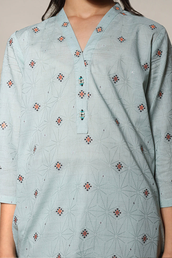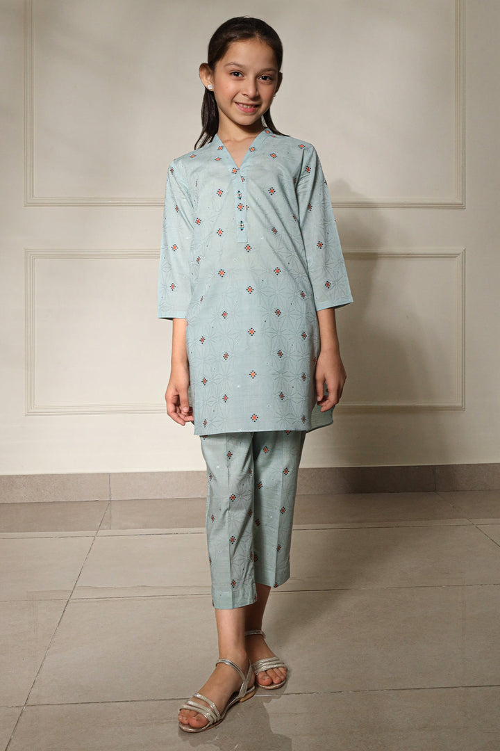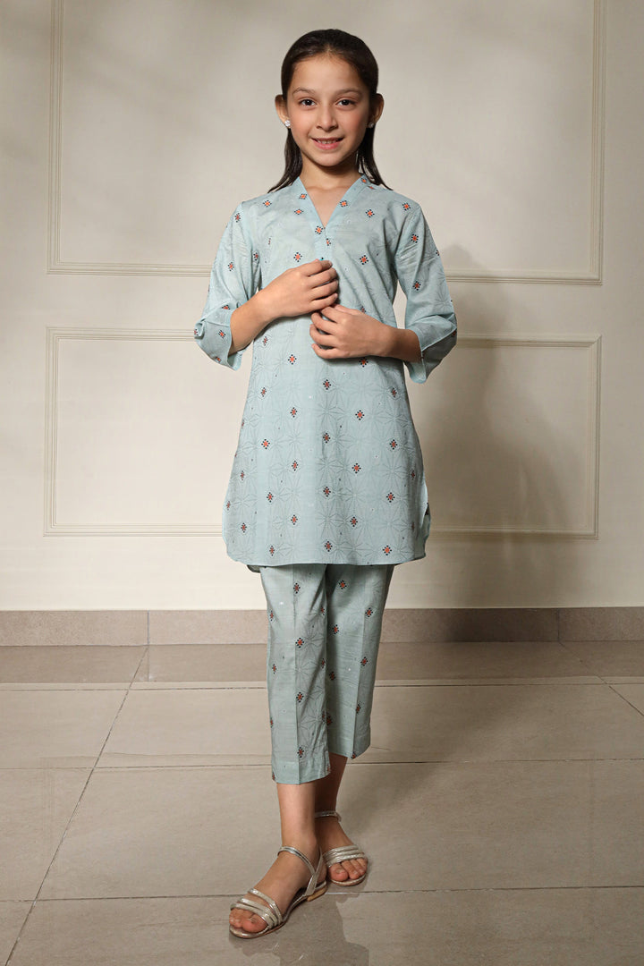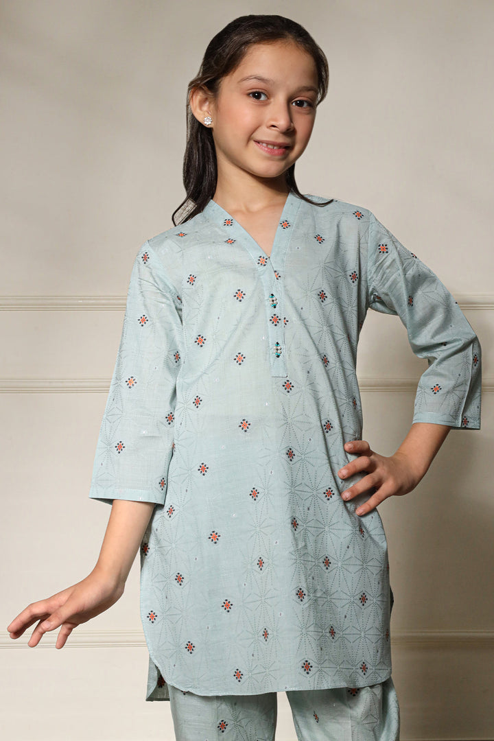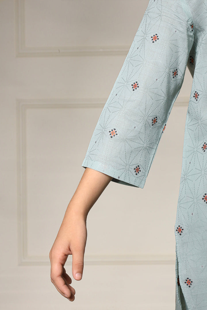 Stitched Cotton Jacquard Shirt/Trouser For Kids