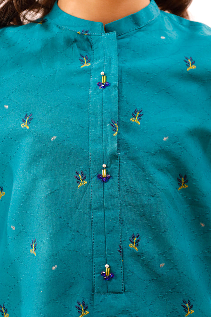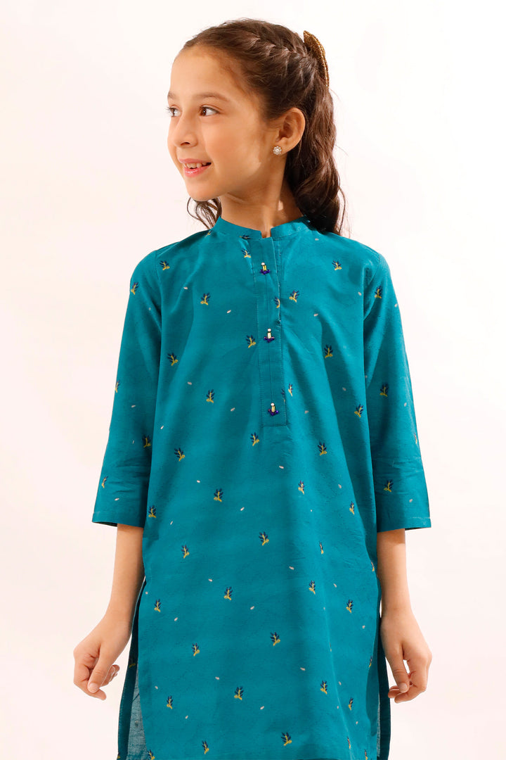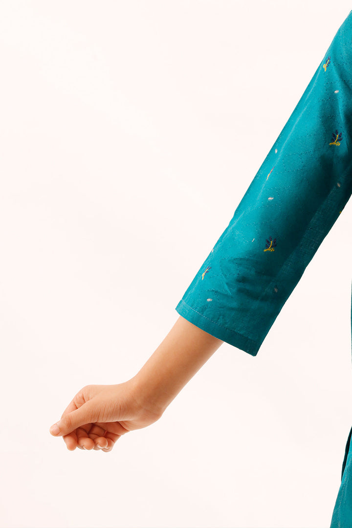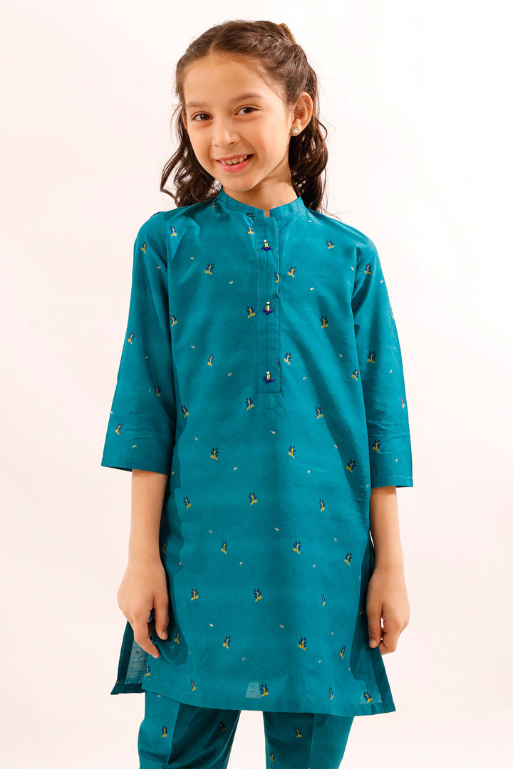 Upgrade your child's wardrobe with Saya's Sea Green Stitched Cotton Jacquard 2-Piece Set. Featuring a premium cotton jacquard shirt and matching trousers, this ensemble offers comfort and elegance for casual outings and special occasions. Designed for the modern Pakistani child seeking style and ease.