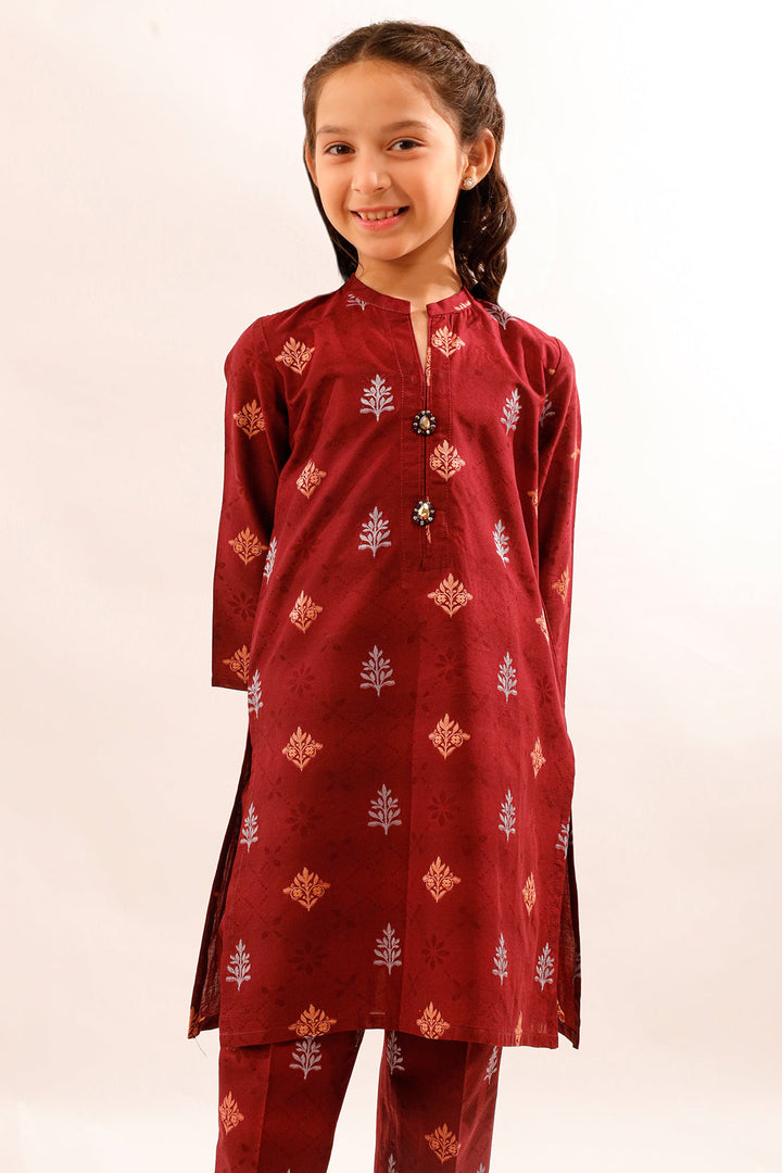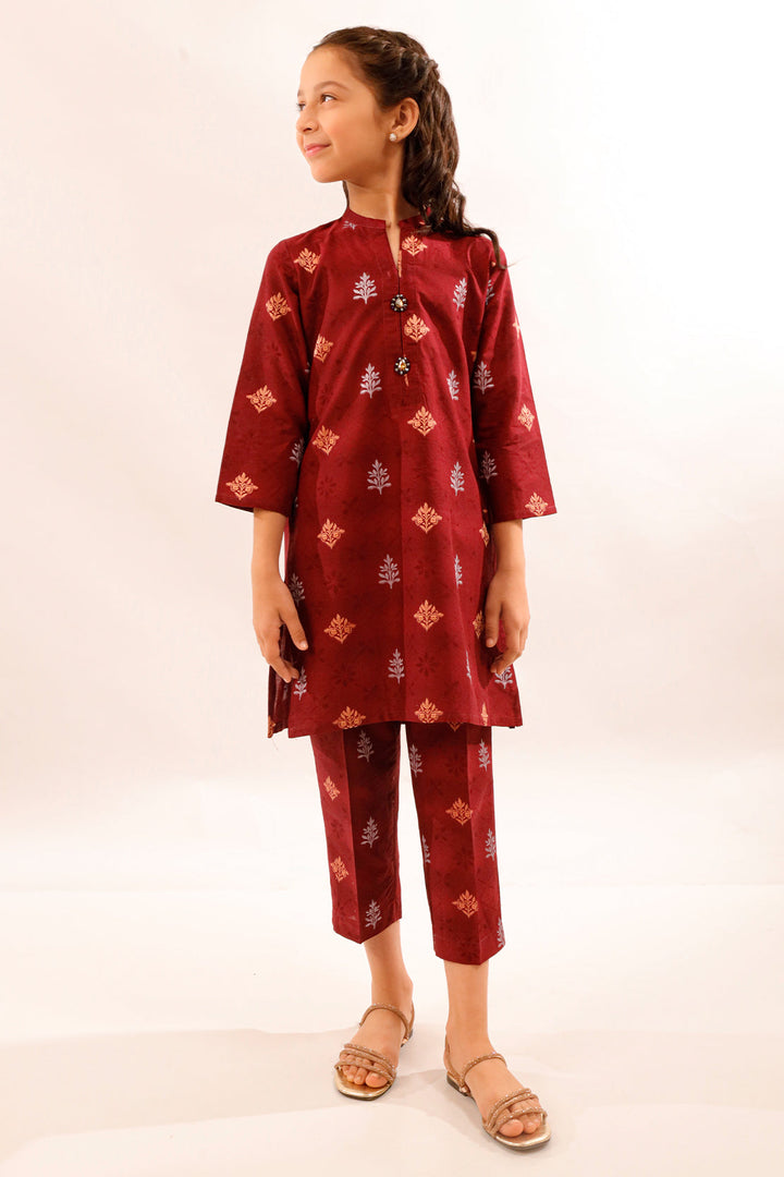 Dress your little one in this elegantly crafted cotton jacquard 2-piece set. The stitched shirt and trouser combo is perfect for formal gatherings or festive occasions, combining subtle texture with breathable comfort and refined style.