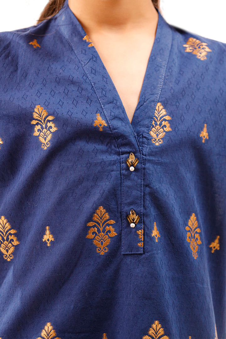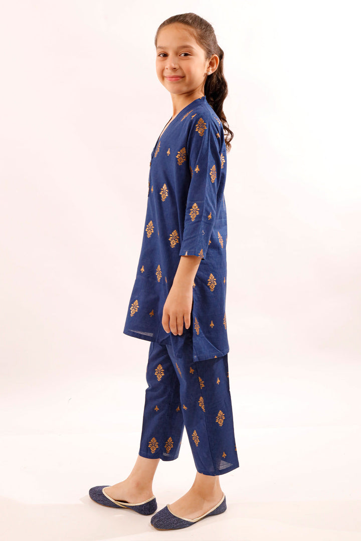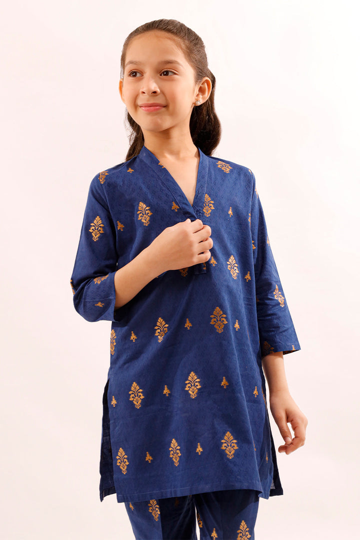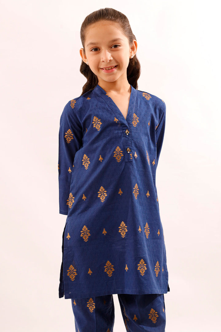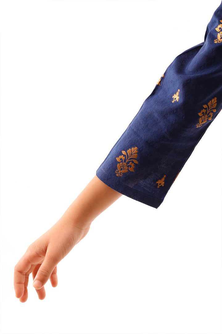 Dress your child in timeless elegance with this 2-piece stitched cotton jacquard set in green. Featuring a soft texture and classic silhouette, it’s perfect for festive events and formal outings.