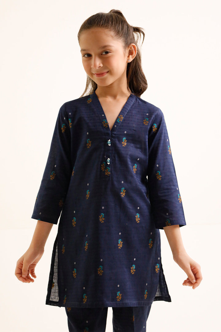 Dress your little ones in timeless elegance with our Stitched Cotton Jacquard 2-Piece Set, featuring premium jacquard weave fabric. This ready-to-wear ensemble combines comfort and sophistication, making it perfect for special occasions and festive celebrations.