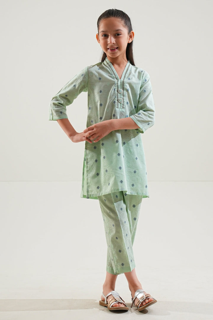 Effortless Charm Meets Practical Comfort In This SAYA Stitched Cotton Jacquard Kids’ Shirt & Trouser Set. Crafted From Soft, Breathable Jacquard Fabric With Subtle Weave Texture, The Ready-To-Wear Shirt Offers Stylish Ease While The Coordinating Trouser Provides Durable Comfort. Ideal For Playdates, Family Gatherings, Or Festive Events—Perfect For Little Trendsetters Who Value Both Style And Ease.