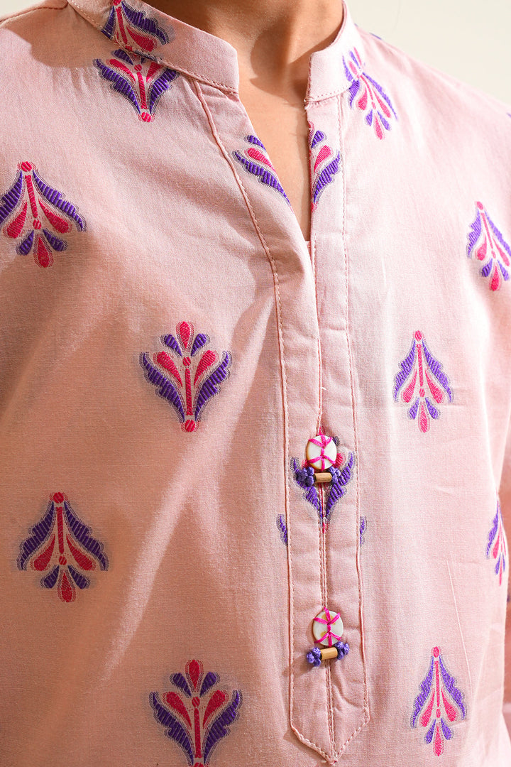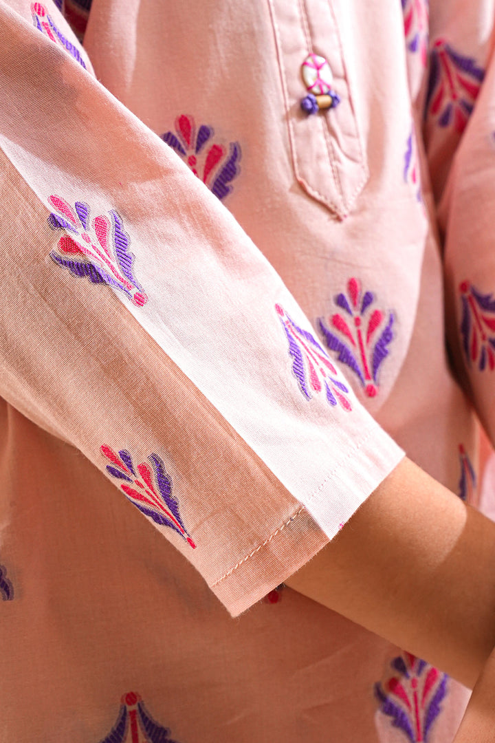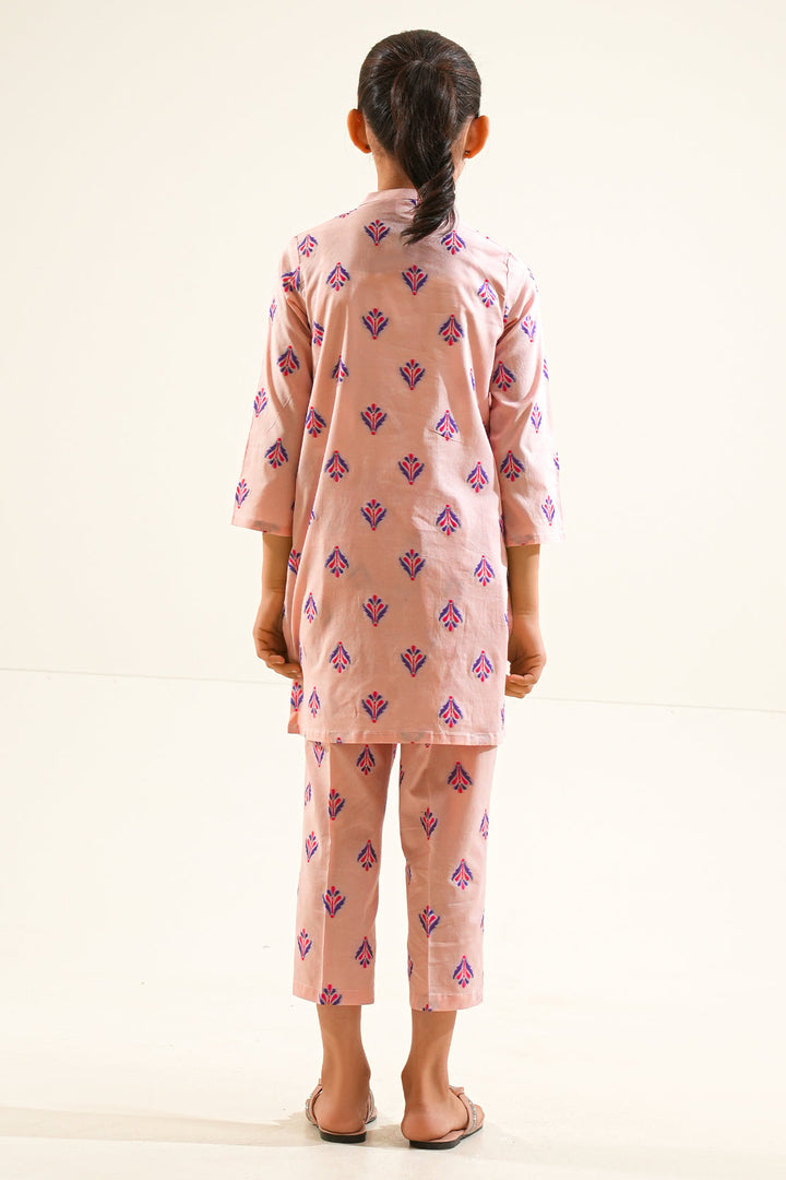 Stitched Cotton Jacquard Shirt/trouser For Kids