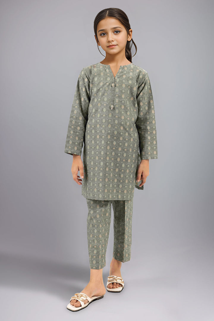 Stitched Cotton Jacquard Shirt/trouser For Kids