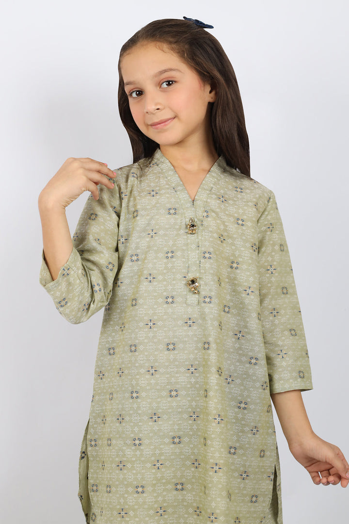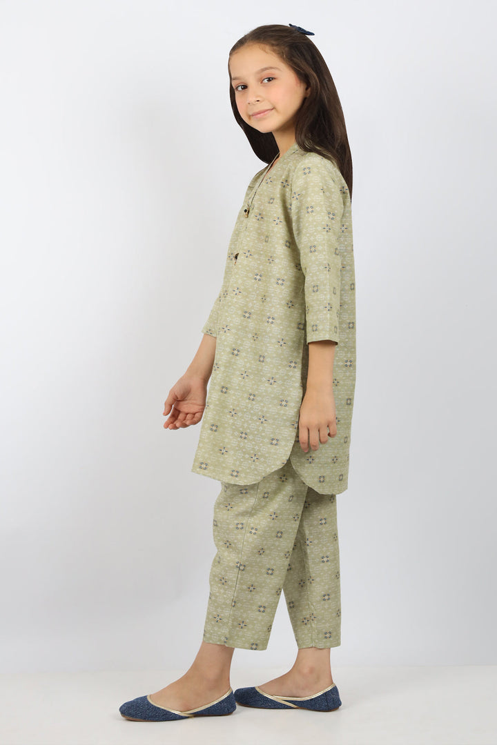 Stitched Cotton Jacquard Shirt/Trouser For Kids