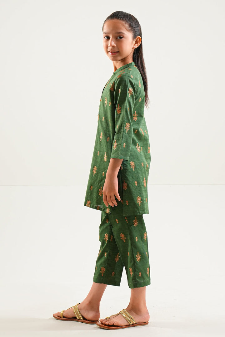 Stylish Comfort Meets Everyday Playfulness In This SAYA Stitched Cotton Jacquard Kids’ Shirt & Trouser Set. Crafted From Textured, Breathable Cotton Jacquard, The Ready-To-Wear Shirt Features Subtle Weave Details And Easy Movement, While The Matching Trouser Ensures Durability And Comfort. Ideal For Playdates, Casual Outings, Or Festive Fun, It Combines Practicality With Chic Appeal.
