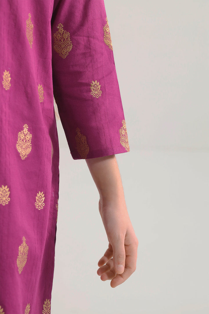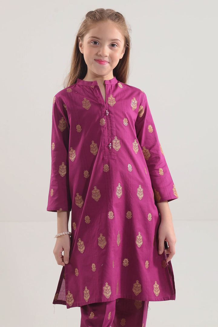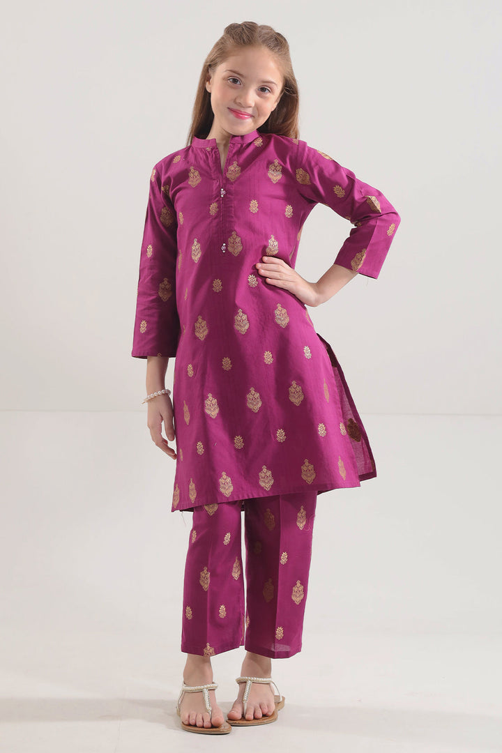 Stitched Cotton Jacquard Shirt & Trouser Set For Kids By SAYA, Crafted In Ultra-Soft, Breathable Cotton Jacquard With Subtle Woven Texture. The Shirt Comes In A Rich Plum Tone With A Straight-Cut Silhouette, Perfect For School, Family Gatherings Or Playdates. The Trouser Features An Elastic Waist For Easy Dressing And Comfort Through Play. Durable Stitching And Lightweight Fabric Blend Make It A Reliable Style Piece For Little Ones Who Move, Jump And Explore. Stylish, Practical And Crafted With SAYA’s Signature Quality.