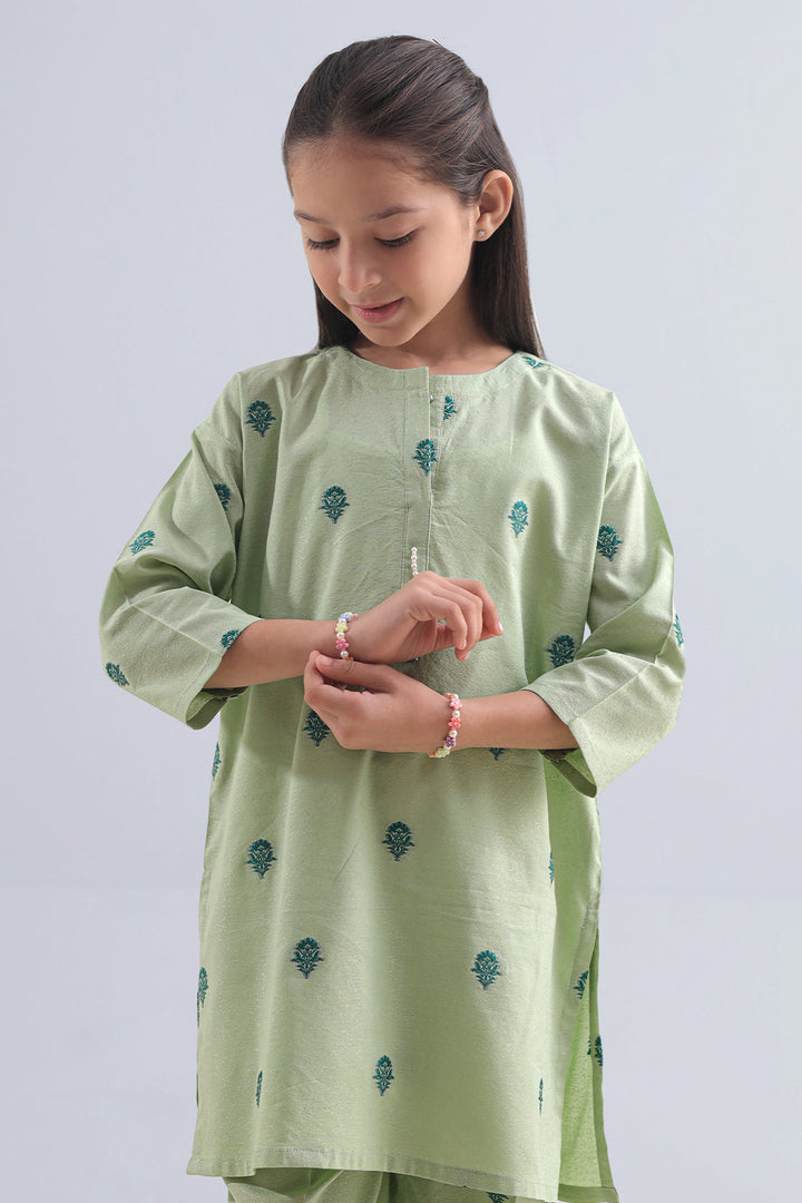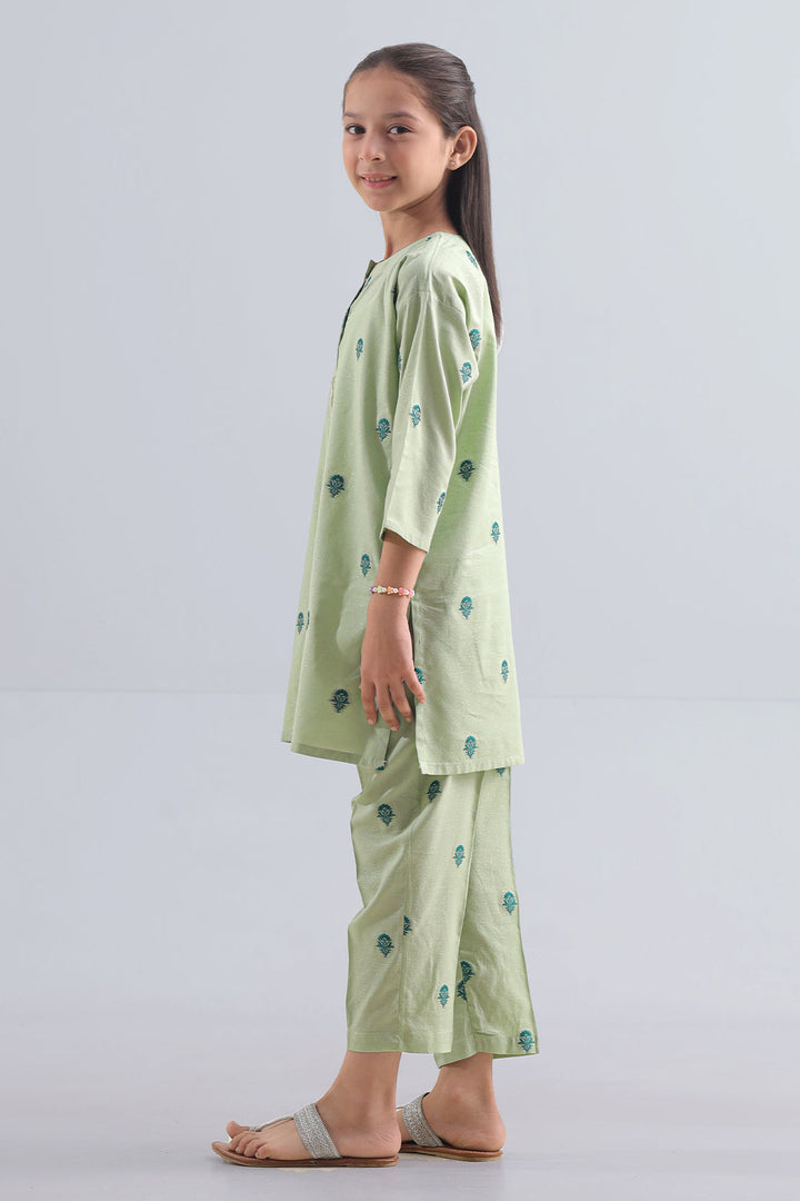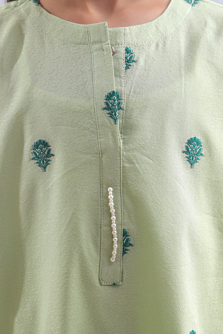 Dress Young Ones With Style And Comfort In This Stitched Cotton Jacquard Shirt & Trouser Set By SAYA. Made From Soft, Breathable Cotton Jacquard With Subtle Texture, The Shirt Offers A Neat And Polished Look. Paired With A Matching Trouser Cut For Ease Of Movement, This Ensemble Is Ideal For Daily Wear, School Outings, Or Festive Appearances. A Perfect Blend Of Practicality And Miniature Elegance For Little Trendsetters.