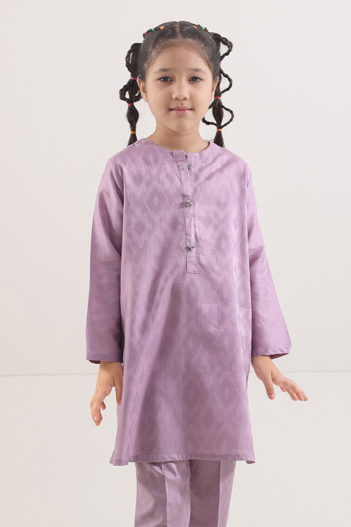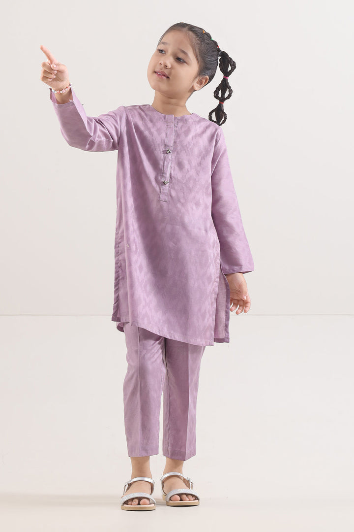 Stitched Cotton Jacquard Shirt & Trouser For Kids By SAYA, Crafted From Soft, Breathable Cotton Jacquard With A Subtle Woven Texture That Elevates The Look. The Shirt Comes In A Cheerful Purple Hue With Neat Tailoring And Clean Lines, While The Trouser Features An Elastic Waist For Easy Wear And Movement.Built With Durable Stitching And Finished Hems, This Two-Piece Is Perfect For School, Family Outings Or Festive Daywear. A Stylish, Practical Ensemble That Combines Comfort, Texture And Kid-Friendly Design.