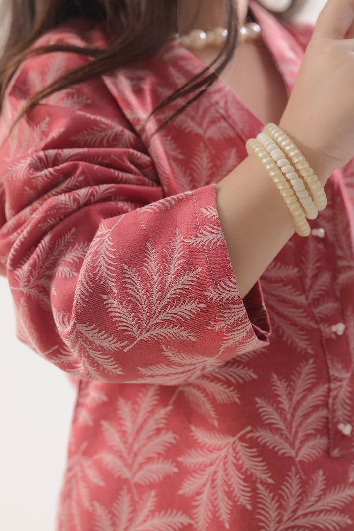 Stitched Cotton Jacquard Shirt & Trouser For Kids By SAYA, Crafted From Soft, Breathable Cotton With A Subtle Jacquard Weave That Adds Elegant Texture. The Shirt Comes In A Bright Pink Tone With Clean Cut, While The Trouser Features An Elastic Waist For Easy Movement. Ready-To-Wear With Fine Stitching And Durable Finish, This Set Is Ideal For School, Playdates Or Festive Outings. A Stylish And Practical Ensemble That Blends Comfort, Charm And Youthful Energy.