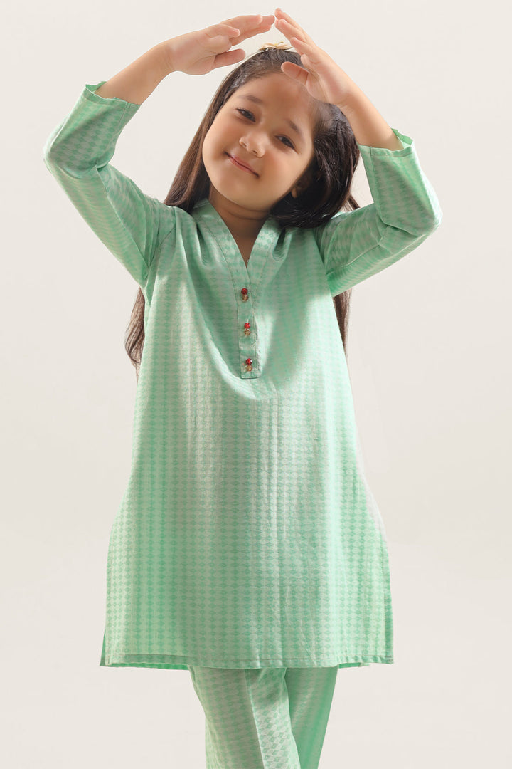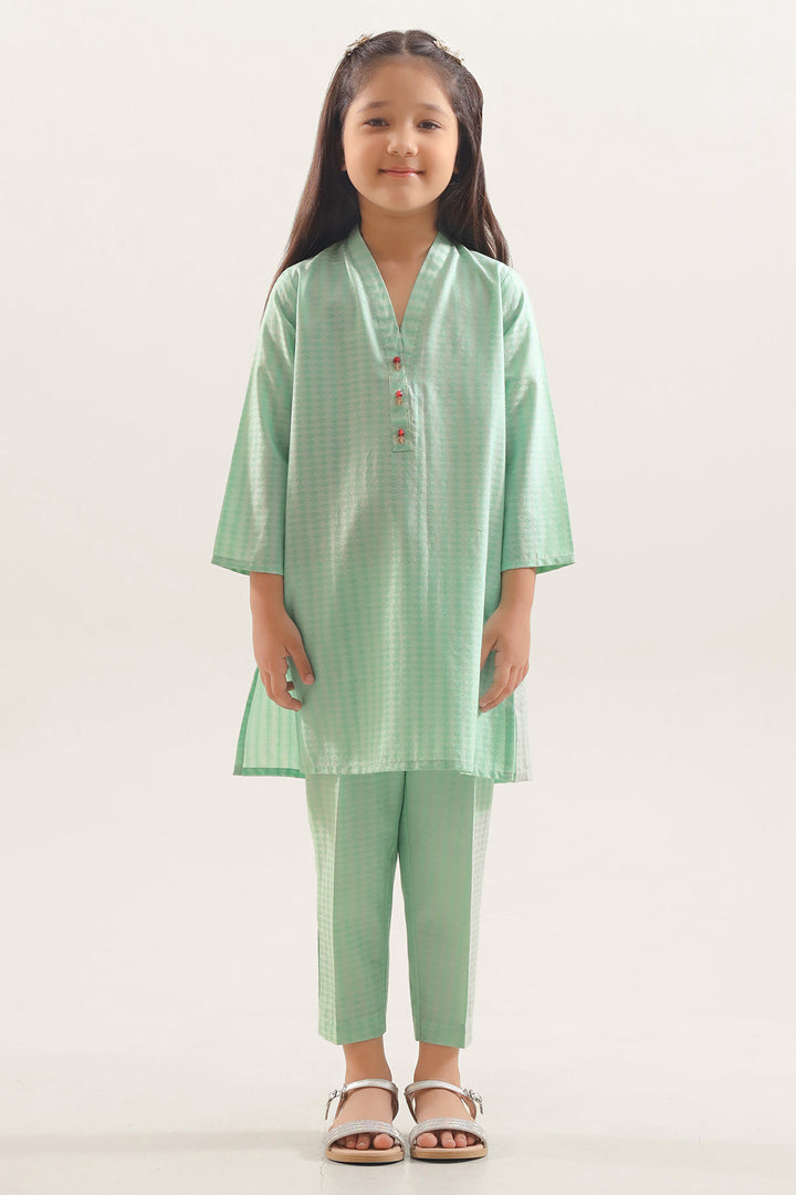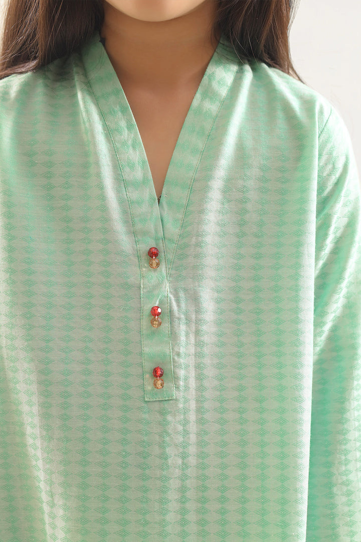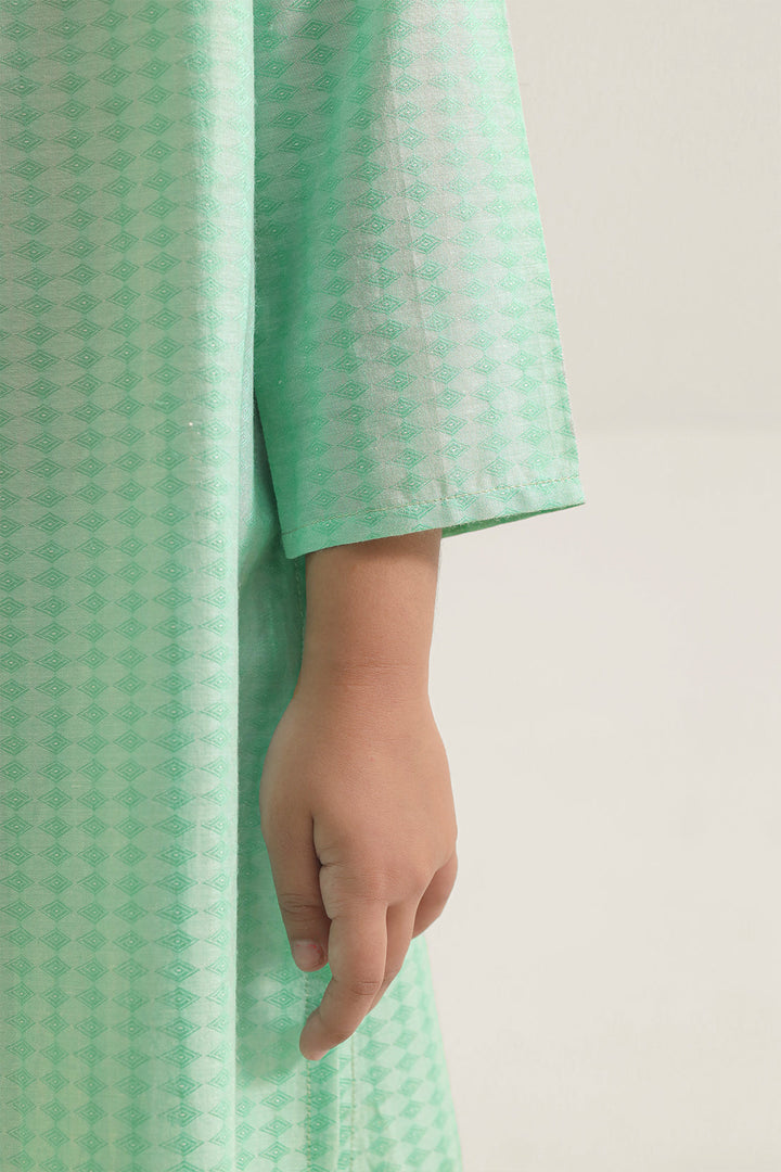 Presenting The SAYA Stitched Cotton Jacquard Ensemble, A Masterpiece Of Textile Artistry. Exquisitely Crafted From Premium Breathable Cotton, This Set Features An Elaborate Jacquard Weave That Creates A Captivating All-Over Pattern. Designed For Both Style And Comfort, It Offers A Flawless Tailored Fit For Young Patrons Of Refinement. The Harmonious Coordination Between The Shirt And Trousers Embodies A Perfect Balance Of Traditional Craft And Modern Aesthetics, Making It The Quintessential Choice For Weddings, Eid Festivities, And Distinguished Celebrations. Elevate Every Occasion With SAYA’s Signature Blend Of Luxury And Grace.