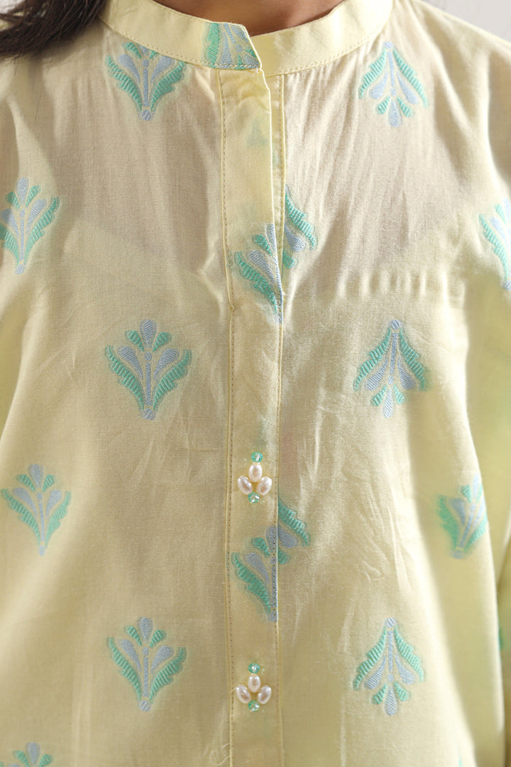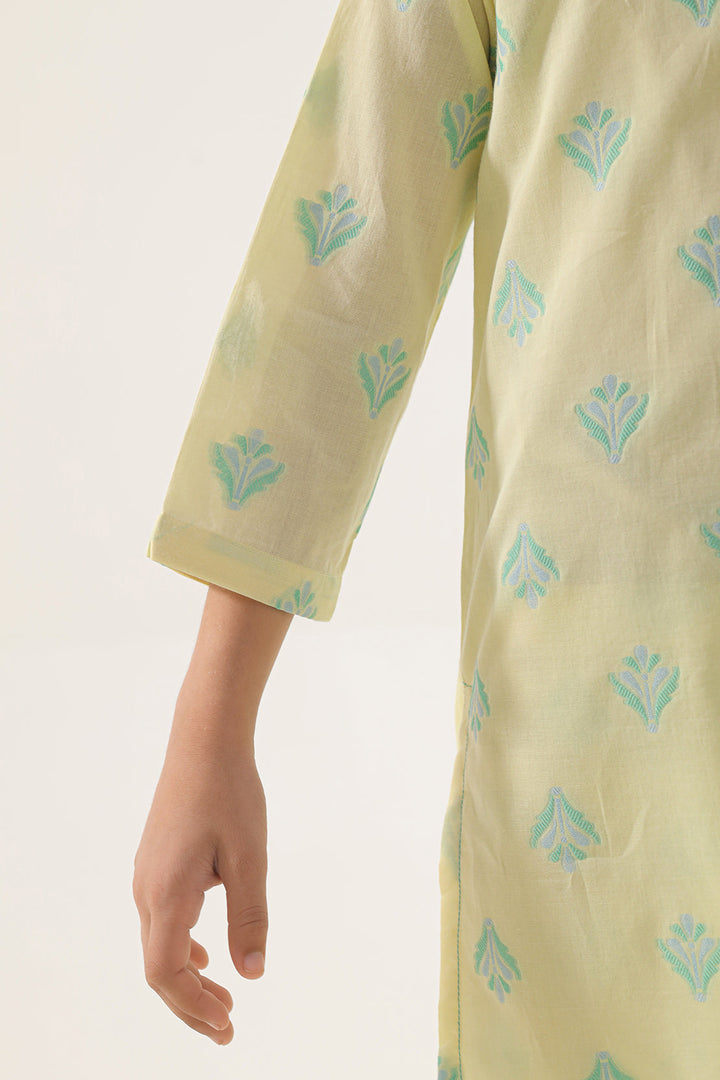 Bring Classic Style To Your Child’s Closet With This Stitched Cotton Jacquard Shirt Trouser Set For Kids From SAYA. Made With Soft, Breathable Cotton Jacquard, The Shirt Features A Subtle Self-Textured Design That Lends A Graceful Finish. The Coordinated Trouser Completes The Look With Ease And Comfort, Making It Perfect For Daytime Gatherings, Cultural Events, Or Stylish Everyday Outfits. A Timeless Ensemble That Combines Sophisticated Detailing With Child-Friendly Comfort.