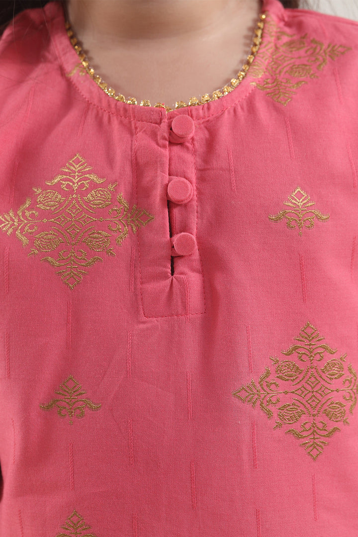 Elevate Your Child’s Wardrobe With This Stitched Cotton Jacquard Shirt & Trouser Set By SAYA, Crafted From Premium Jacquard Cotton That Offers Rich Texture And Breathable Comfort. The Shirt Features A Clean, Tailored Fit With Subtle Patterning That Accentuates Fabric Depth, While The Trouser Provides A Smooth, Relaxed Silhouette Built For Everyday Movement. This Ready-To-Wear Ensemble Is Ideal For School Days, Family Outings, Or Festive Moments Where Style And Practicality Meet.