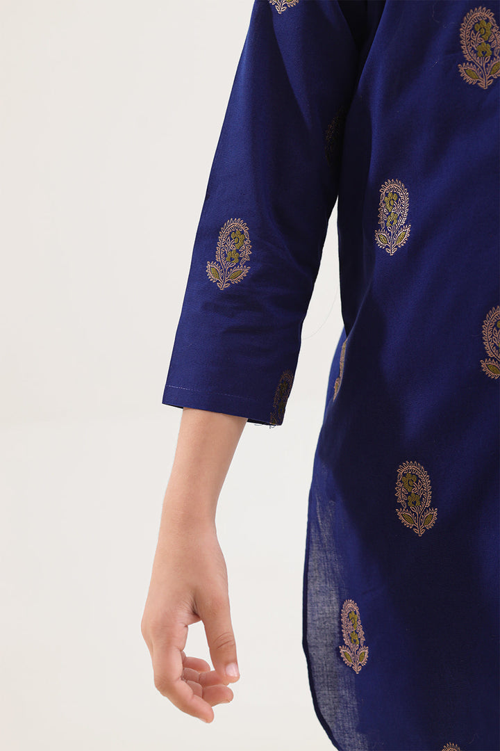 Dress Your Little One In Timeless Charm With This Stitched Cotton Jacquard Shirt And Trouser Set For Kids By SAYA. Made From Soft And Breathable Jacquard Cotton, The Outfit Offers A Gentle Feel Against The Skin While Ensuring Lasting Durability. The Shirt Features A Subtle Textured Pattern, Beautifully Paired With A Comfortable Cotton Jacquard Trouser For A Perfectly Coordinated Look. Ideal For Family Gatherings, Festive Events, Or Casual Outings, This Ready-To-Wear Set Combines Style, Comfort, And Practicality For Kids’ Fashion.