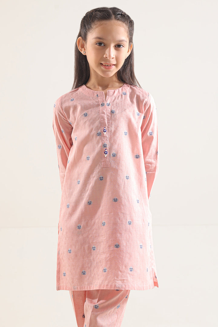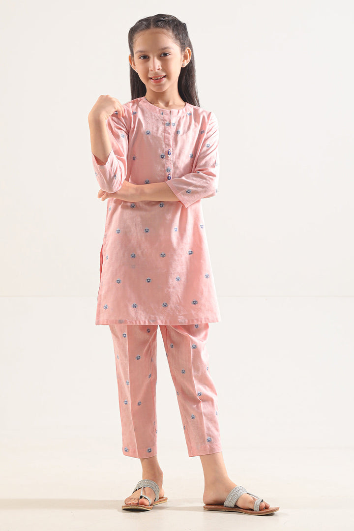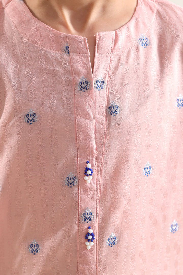 Dress Your Little One In Classic Comfort With SAYA’s Stitched Cotton Jacquard Shirt & Trouser Set For Kids. Tailored From Textured Jacquard Fabric, This 2-Piece Outfit Features A Gracefully Designed Shirt With Subtle Patterns And A Coordinated Trouser, Offering A Sophisticated Yet Playful Look For Formal Events Or Festive Gatherings.
