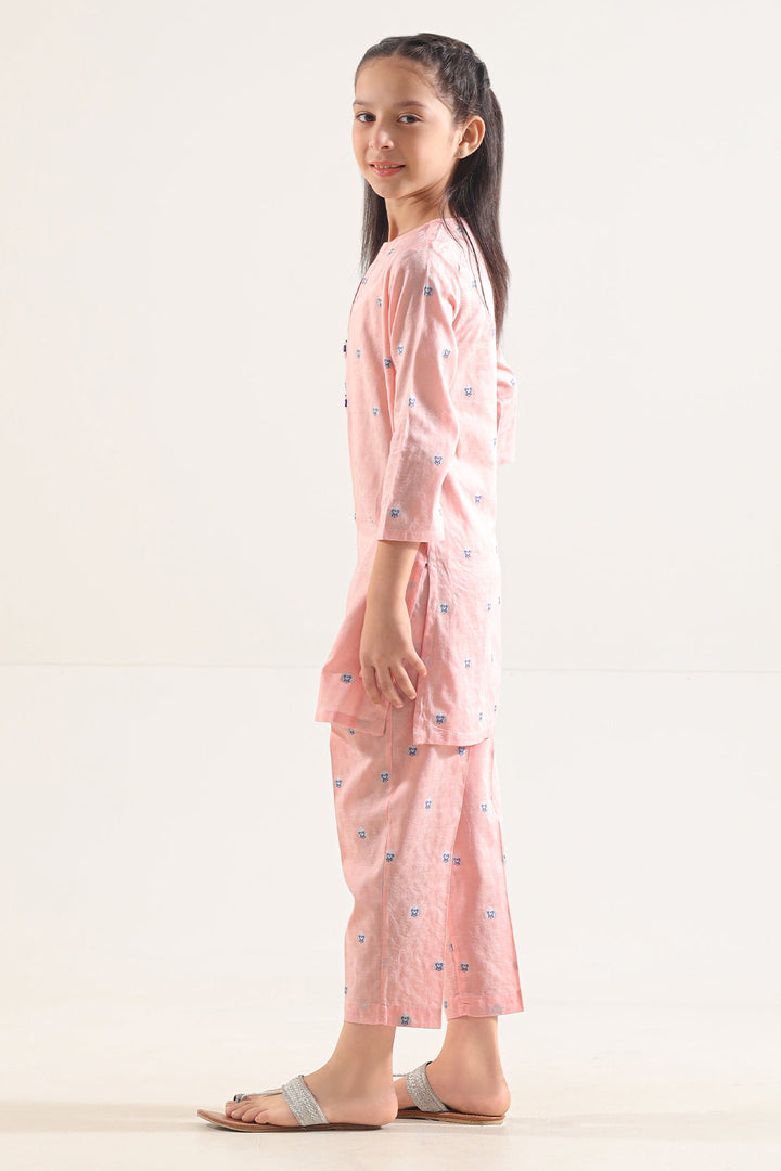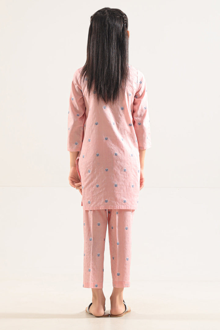 Stitched Cotton Jacquard Shirt/trouser For Kids