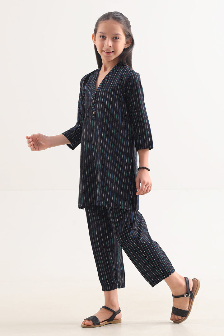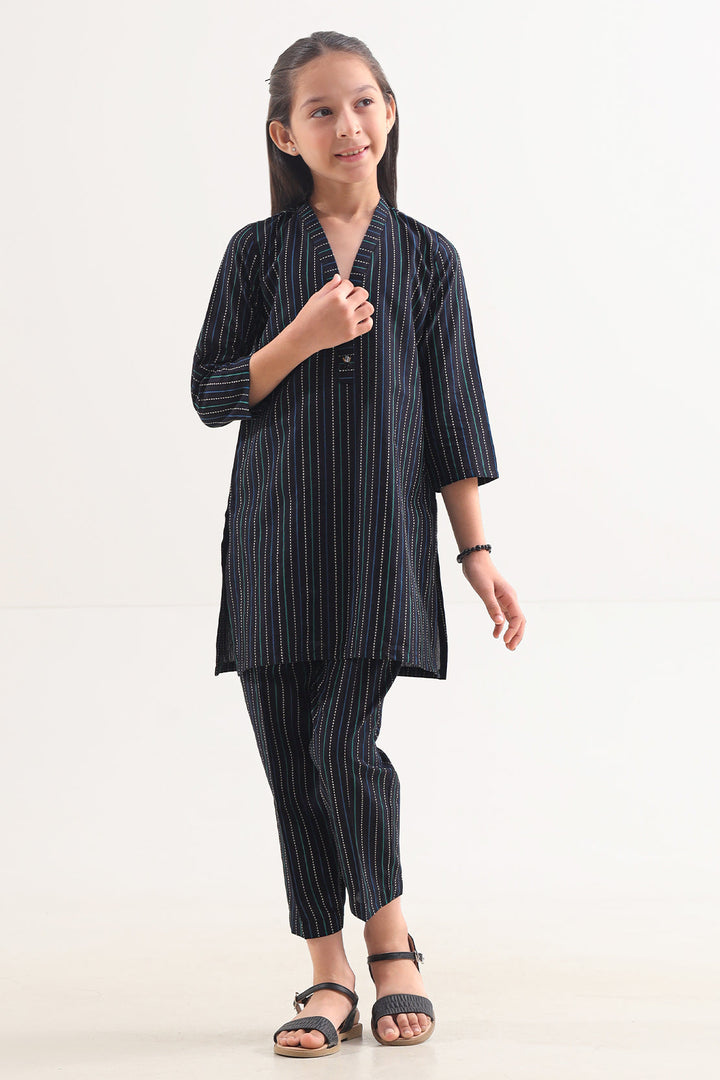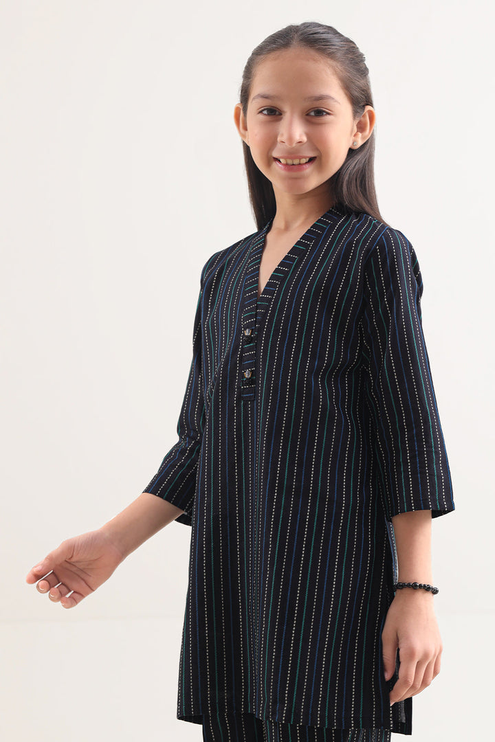 Dress Your Child In Understated Elegance With This Stitched Cotton Jacquard Shirt Trouser Set For Kids From SAYA. Made From Soft And Durable Cotton Jacquard, The Shirt Features A Delicate Self-Textured Pattern That Adds A Touch Of Sophistication. Paired With A Coordinated Trouser, The Set Offers All-Day Comfort And A Polished Look. Perfect For Family Gatherings, Cultural Events, Or Neat Everyday Wear, This Outfit Reflects SAYA’s Commitment To Quality And Refined Style.