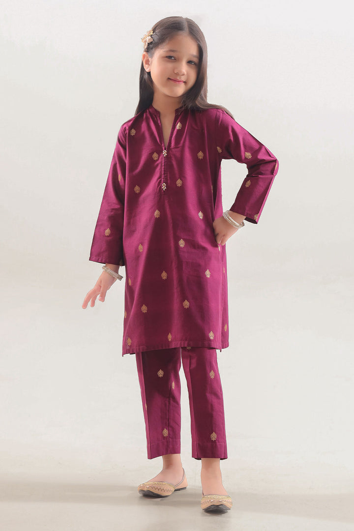 Dress Young Fashionistas In Refined Comfort With The SAYA Stitched Cotton Jacquard 2-Piece Set, Woven From Premium Cotton Jacquard That Combines Breathability With Elegant Texture. The Shirt Features A Subtle Textural Weave That Acts As A Quiet Statement, Enhanced By Neat Stitching And A Tailored Fit That Allows Playful Movement. The Coordinated Trouser Offers A Straight Cut And Comfortable Waistband To Match The Shirt’s Sophisticated Appeal. Ideal For Family Gatherings, Festive Events Or Smart Casual Days, This Ensemble Bridges Comfort And Style With Youthful Grace.