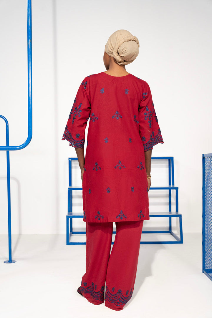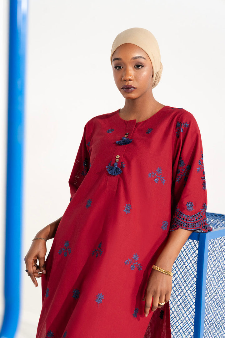 Elevate your wardrobe with our embroidered cambric Kurta. This kurta features intricate embroidery and elegant tassel detailing.