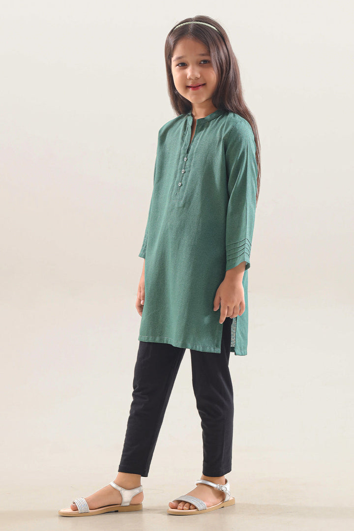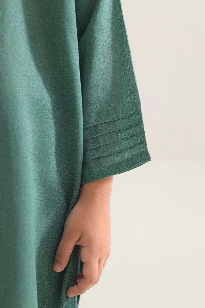Elegant And Comfortable, This SAYA Stitched Karandi Shirt For Kids In Green Combines Warmth With Sophistication. Crafted From Soft Karandi Fabric, It Offers A Gentle Texture And Cozy Feel Perfect For Cooler Days. The Minimal Yet Polished Design Features Fine Stitching, Ensuring Durability And A Clean Finish. Its Subtle Color Tone Adds A Touch Of Grace, Making It Ideal For Family Gatherings, Festive Occasions, Or Smart Everyday Wear.
