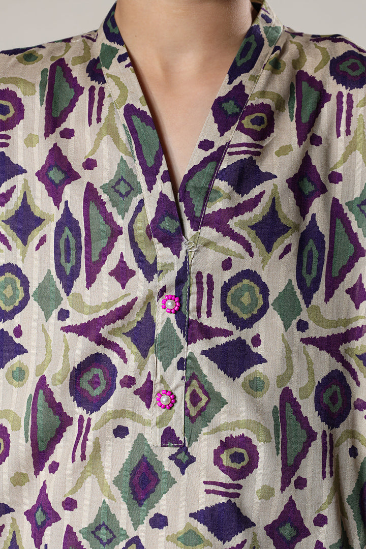 Keep your summer wardrobe light and stylish with Saya’s Stitched Lawn 2 Piece – 4. Designed in breathable lawn fabric, this printed shirt and dyed trouser combo offers effortless comfort with elegant flair. A perfect go-to for daily wear, it's ideal for women looking for affordable and trendy stitched lawn suits online in Pakistan.