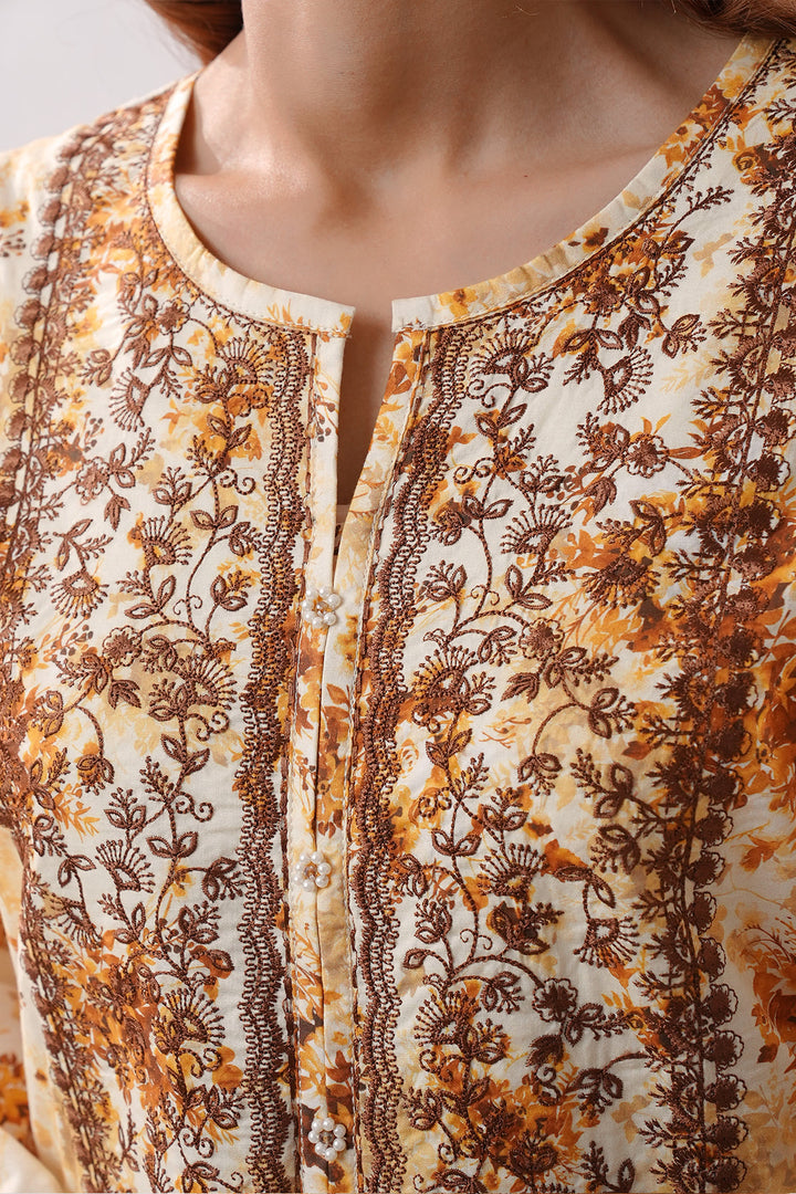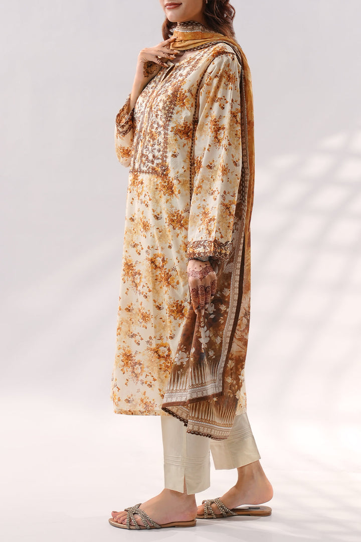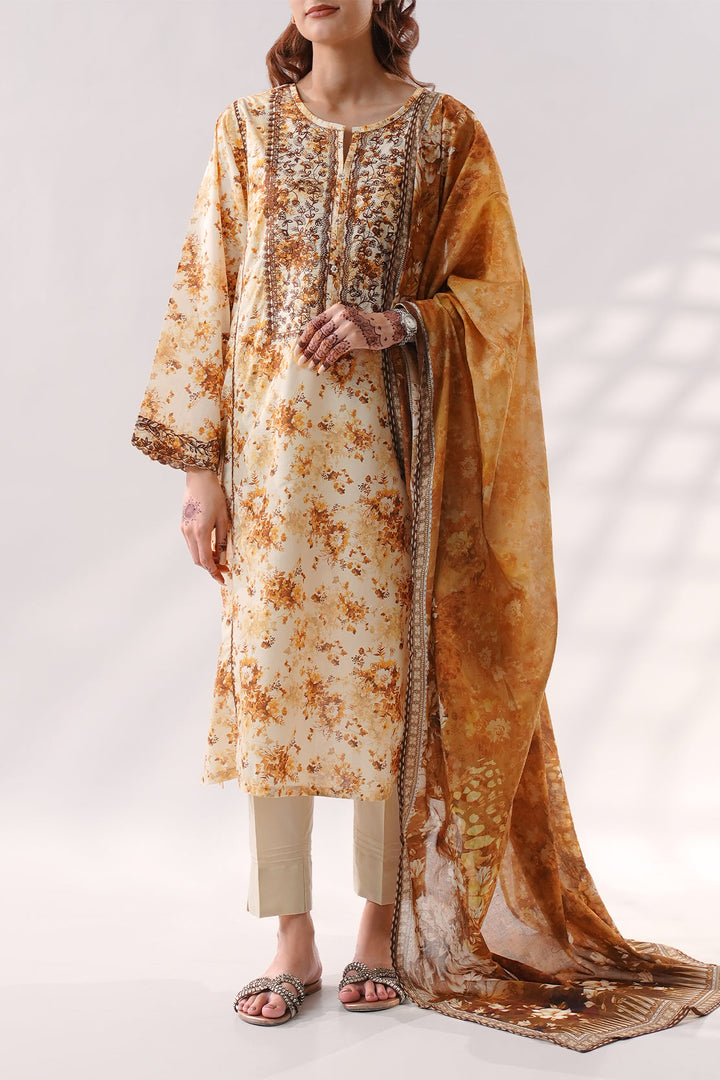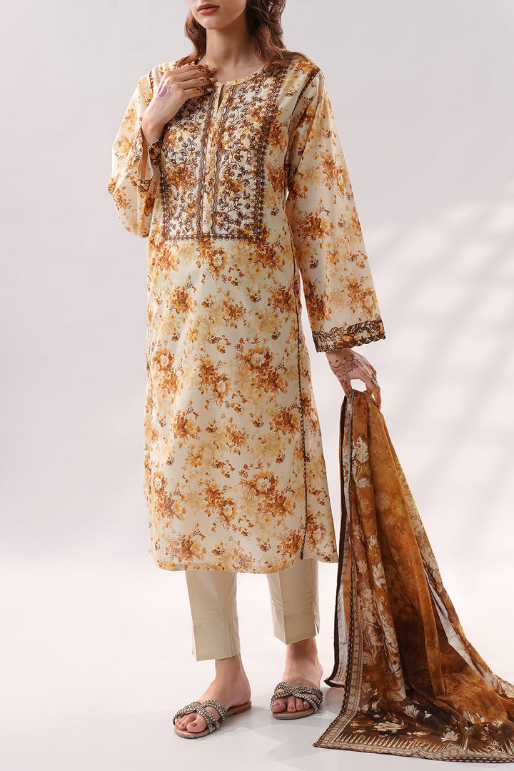 Elevate your summer wardrobe with this Stitched Printed Embroidered Lawn 3-Piece from Saya. Crafted with breathable lawn fabric, this set features a beautifully printed and embroidered shirt, dyed trouser, and a soft printed lawn dupatta—perfect for everyday wear with a touch of elegance.
